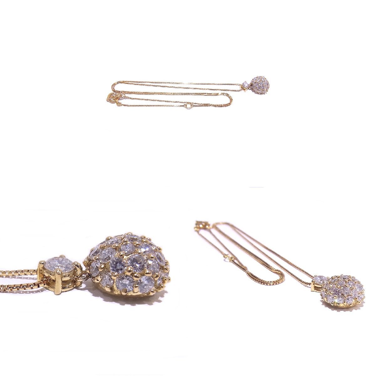 | 詳細・備考 | 合計1.25ctのダイヤモンドを使用したネックレスが入荷致しました。プレゼントにもおすすめです。 ■ペンダント・留具に若干使用感がございますが、全体的に状態の良いお品物です。 ☆お使いのモニターによっては、写真と実物の色味が若干違う場合がございます。ご了承ください。 |