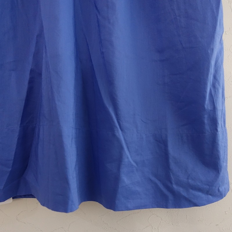 | COMPTOIR DES COTONNIERSのコットンフリルワンピースです。カラーはライトブルーです。艶のあるコットンの薄手生地を使用。少し透け感がございます。スカート部分には裏地があしらわれております。襟や前立て部分にフリルを配し、胸元にピンタック、ウエストは切替えバンドを配し、上下にギャザーを寄せ、フロントはドローストリングの紐入り、バックはゴム仕様です。袖口はゴム入りです。腰両サイドにシームポケットがございます。 |