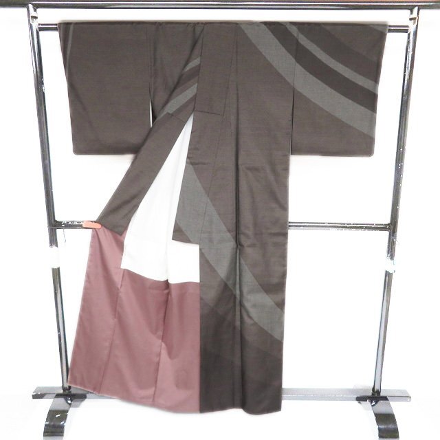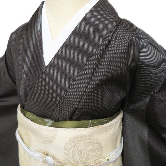 丈160.5cm(+9) 裄64.5cm(+3) 袖丈48.5cm(+7.5) 前幅24cm 後幅29.5cm ※サイズのお直し、承ります。 (身丈のみ、身幅のみのお直しは承っておりません) ※身丈は肩から測っております。 ※()内は※()内の数字はお直しで直せる長さを示しています。お仕立て直しの場合は胴裏を付け替えるため、さらに長く直せる場合があります。詳しくはお問い合わせください。 単位:cm 素材 正絹 商品ランク B ●着用時期 10~5月(+-2週間) ●着用シーン パーティー、お出掛け、式典(簡易)、観劇・コンサートなど ●お色 茶系色 多色 ハリがある生地、シュッシュッと耳心地良い衣擦れの音… 軽やかでさらりとした手触りの、たいへん軽く肌心地の良いこの織りあがりを、是非お手元でもご堪能いただきたく思います。 使用感の少ない、美しいお品物です。 写真に写っている着物のみの販売で帯等の付属品はついておりません。 一部商品は実店舗・他サイトでも並行して販売しておりますので売り切れの際はご了承ください。 その他多数販売中 ho- | ||||||