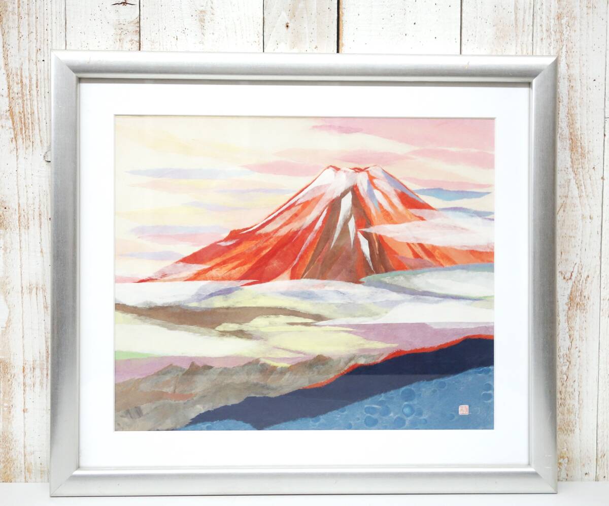 *近代芸術 アート レトロ ちぎり絵 和紙 真作保証 *作品名 赤富士 *作者 不明 *台紙 F8色紙 45x38cm *高級額装品 |