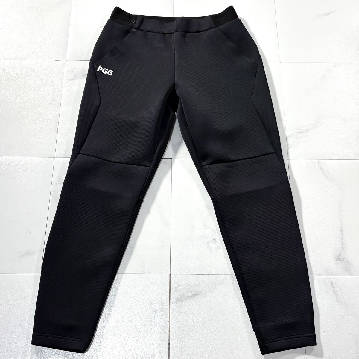 極美品/XLサイズ●PGG パーリーゲイツ PEARLY GATES ジョガーパンツ ゴルフウェア ストレッチ PGGロゴ Dカン ワッフル風 ネイビー 6