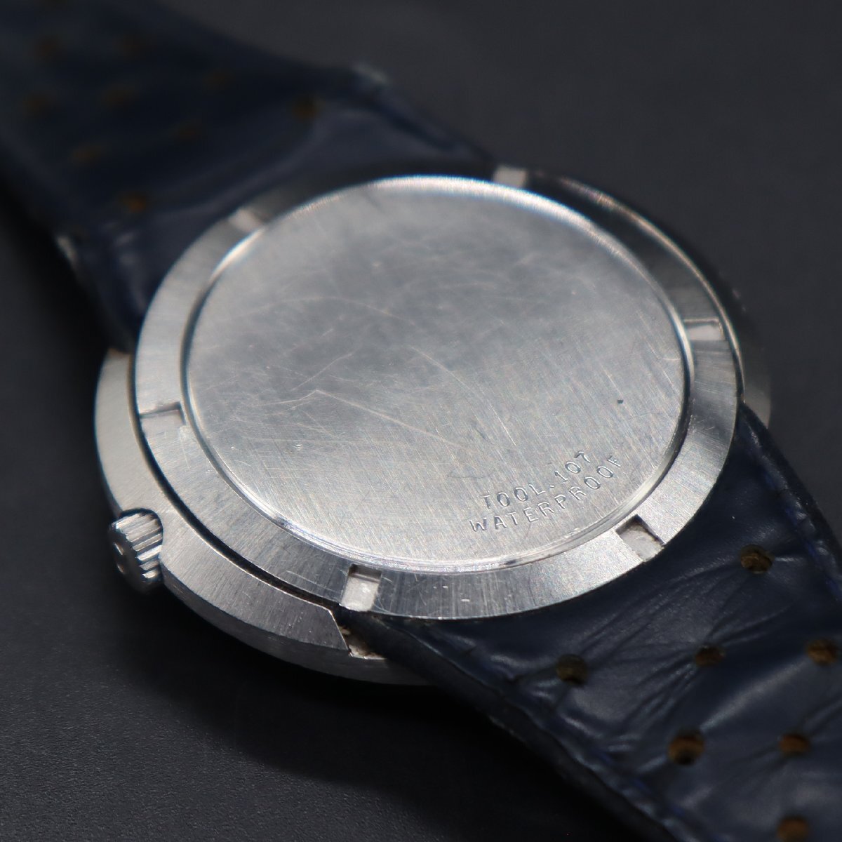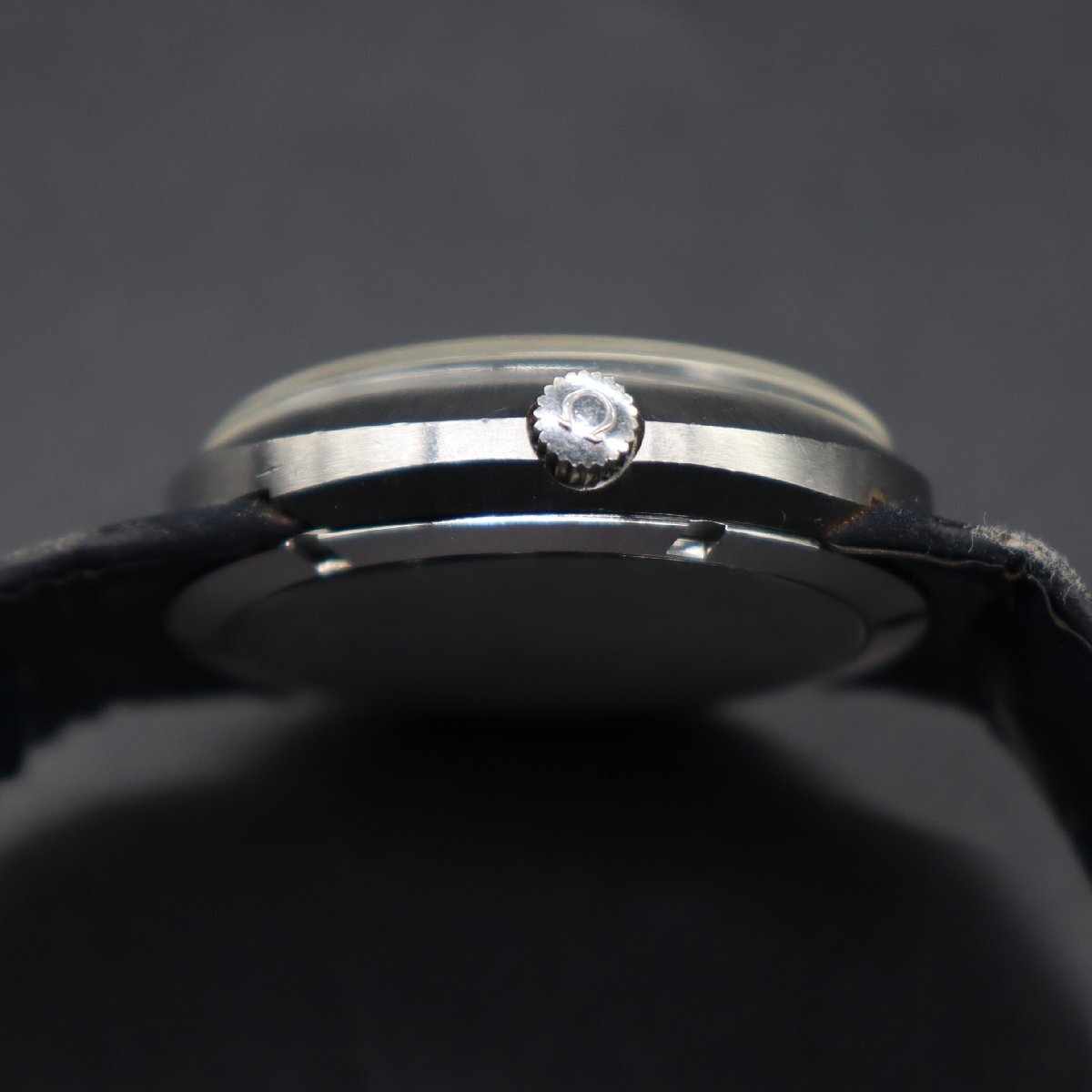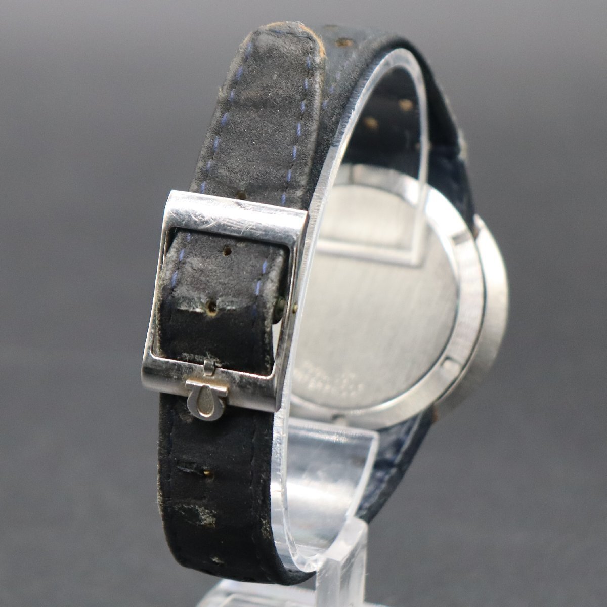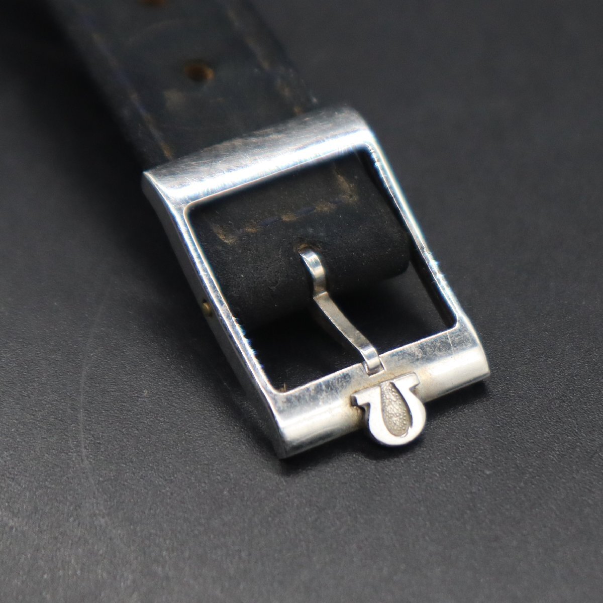 平置きで12時間動作確認済み、大幅な遅れなく稼働中です。 リューズ一段引きで、時刻調整が可能です。 21時-24時付近往復で、日付早送りが可能です。 ※アンティーク時計を長くお使いいただくため、 丁寧に、やさしく操作していただくようお願いいたします。 全体に経年の小キズ・打痕・小汚れ、 風防は、薄いスレやキズ見受けられますが、 目視では目立たず、視認性は問題ございません。 文字盤・針に小傷み、夜光に劣化ございますが、 プリントロゴや印字は消えなく鮮明です。 シルバー×グレーのツートンカラー良好です。 リューズはΩマーク付き、純正品です。 ベルトは傷み・劣化・汚れございますので、オマケとお考えください。 純正Ω尾錠、キズとやや汚れございますがΩマーク良好です。 アンティークですので、詳しくは画像にてご判断願います。 |