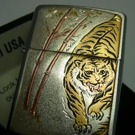 《< 新品正規品 伝統技法 電鋳( 電気鋳造) 和板シリーズ「虎タイガー」 ZIPPO オイルライター >》