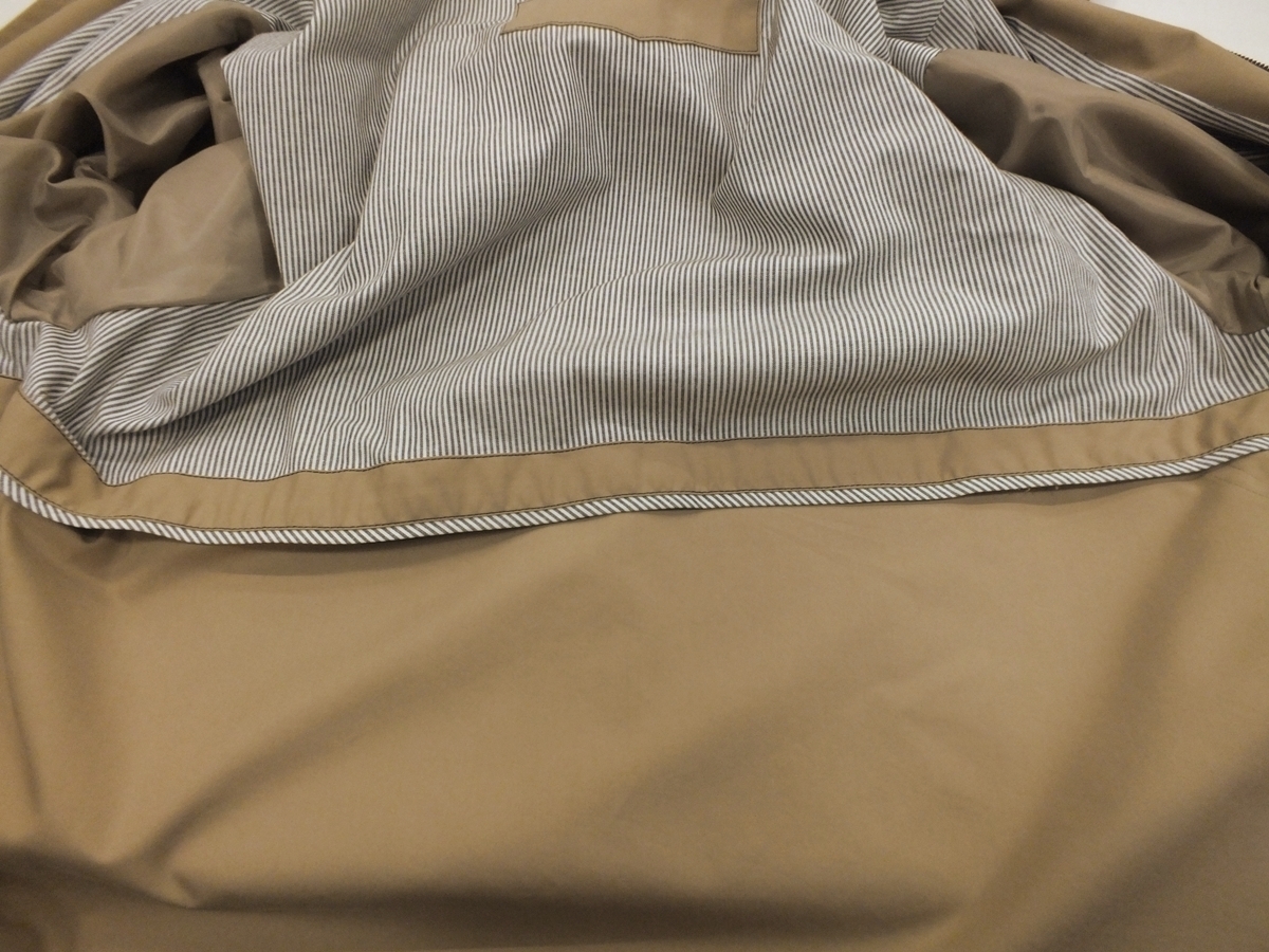 幅広い着こなしが楽しめます! 表素材:綿70/ポリエステル30 裏素材:なし ライナー地:なし カラー:薄茶 デザイン 襟:フード付き、(写真の3枚目に記載)ポケット:内1か所、外2か所/ノーベンツ/1枚仕立て サイズ:L 適用胸囲(バスト96~104) 普段のスーツサイズ Y6・A6・AB6・BB6前後の方 希望小売価格:36,750円(税込) 縫製:中国 実寸 コート丈106・肩幅61.5・袖丈58.5・身幅65(脇の下ボタンを掛けて計れば) | ||||