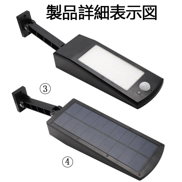 屋外照明 人感センサーライト ソーラーライト 48LED 驚きの照射力 4つのモードで光度調整 白く 超高輝度 防犯ライト [浏览原始页面]