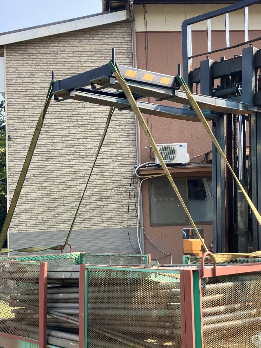 フォークリフトの爪に差し込んで、 フレコンパックの口を広げたまま吊り上げる ことができますので、