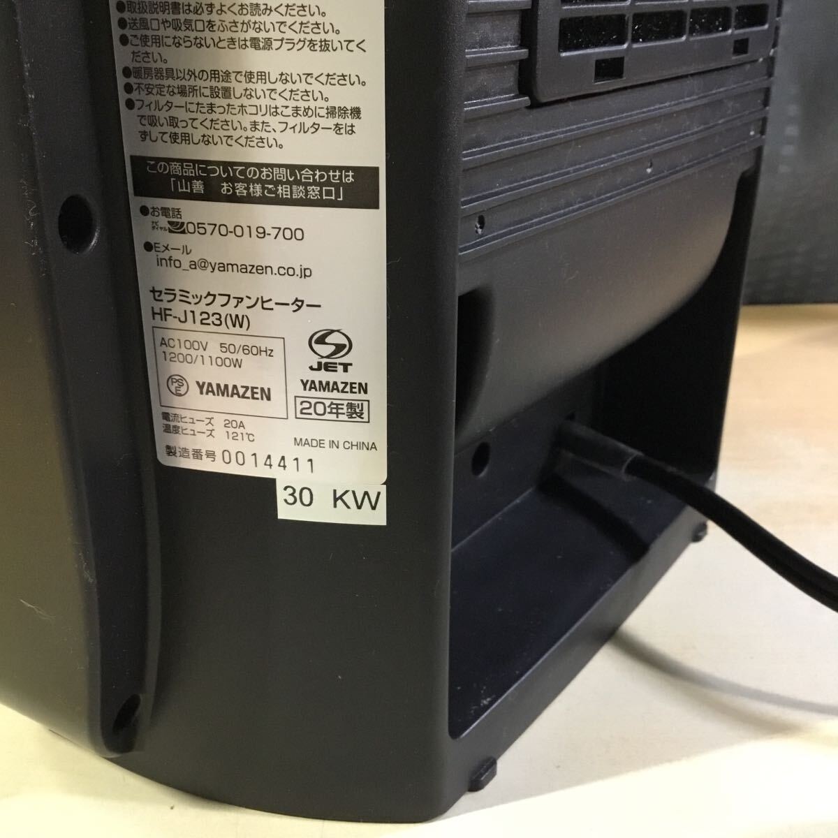 山善 セラミックヒーター HF-J123 W(ホワイト)