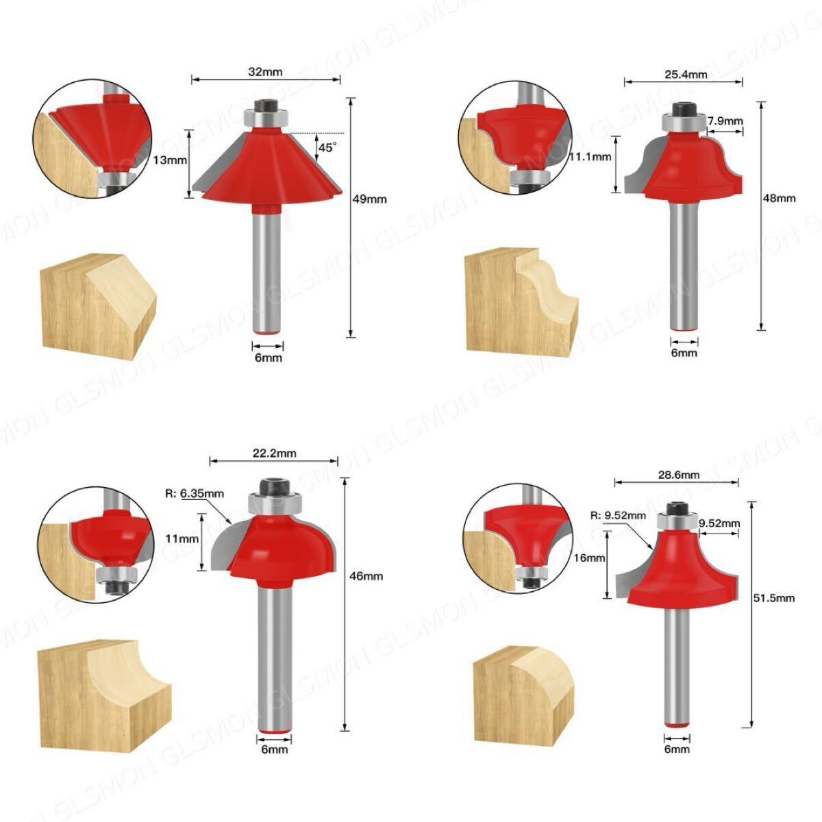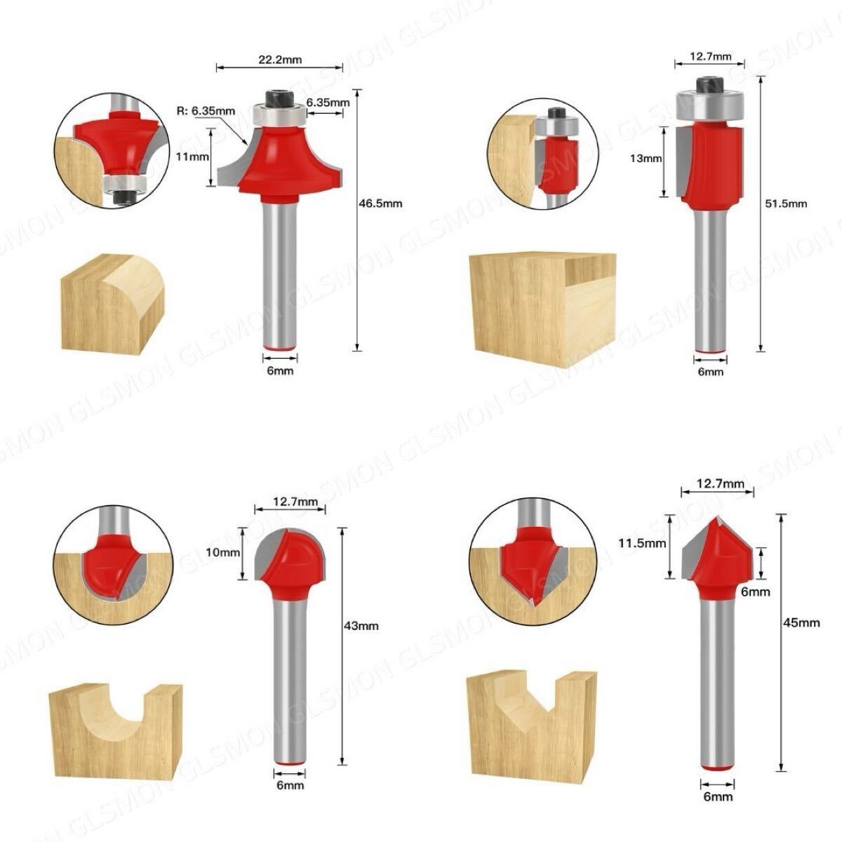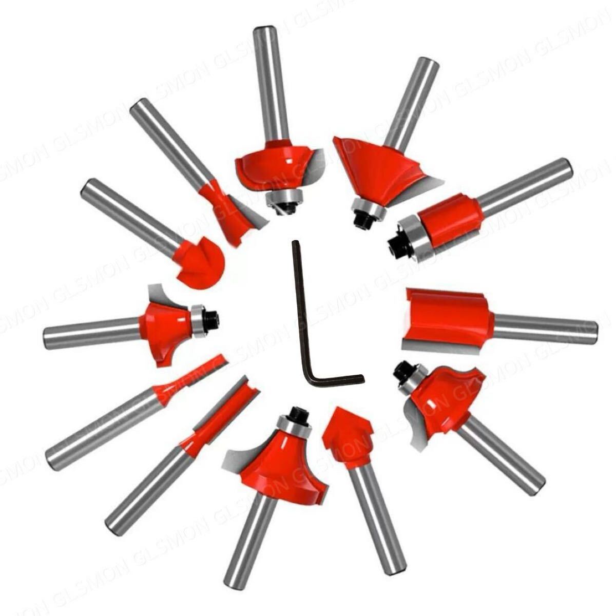 | 超硬チップ 小型 トリマービット 12本セット 六角レンチ付き |
