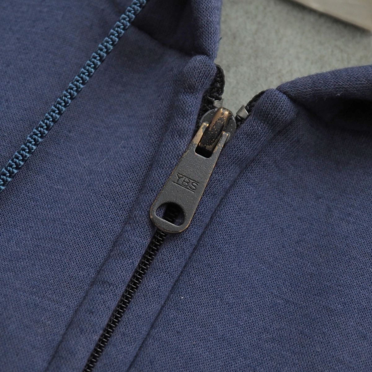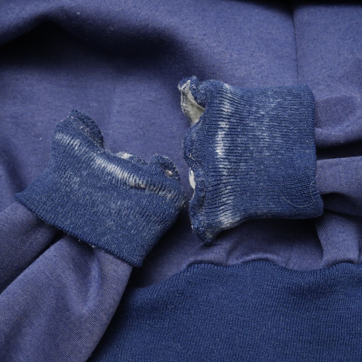 【コンディション詳細】 ※組成表記が一部剥がれておりますため予めご了承下さい。 所々に毛羽感やピリング、背面左肩に薄汚れ、フロント中央下部、背面左下部、左肘、フロント中央裾に薄い小ジミ、左袖上腕部分、フード縁などに薄いシミ、写真のように袖口裏に汚れ、埃がございますものの、ほか支障になるようなダメージなどはございません。 |