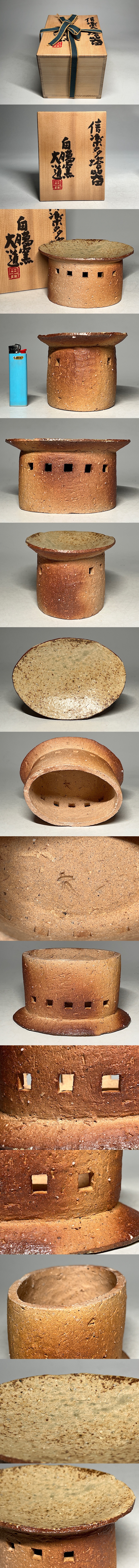 大道窯 信楽多塔器 共箱 ◆商品詳細 寸法(約):8.5x15.5x11.7(高×幅×奥行cm) ※寸法に若干の誤差が生じる場合もございます。 汚れがありますので、 ご承知の上入札お願いします。 状態等画像にてご確認の上ご入札よろしくお願いいたします。 ◆発送先等のご連絡とお支払いについて ※発送先等のご連絡 落札時から48時間以内にお願い致します。 ※お支払 かんたん決済の期限内にお願い致します。 複数点落札時にまとめて取引の場合(72時間内)に、 まとめて取引の取引手順(落札者方の操作)を参考にお願い致します。 梱包したサイズを測って、地方によって送料を決めますので、よろしくお願いします。 ◆掲載画像について ※画像は現物を撮影しておりますが、照度、遮光、モニターによっては実物と 色目が異なって見えることがありますのでご注意ください。掲載画像では確認 できない傷や汚れがある可能性もございます、あくまで 中古品であるということをご承知の上、御入札をお願い致します。 ◆補償について 商品到着後はすぐに状態の確認をお願い致します。 商品の破損等がございまし たら、箱や梱包材など全てそのままの状態で保存し、お早めにご連絡ください。 (到着日から一週間以上経過、梱包材の廃棄済み等の場合、保証は致しかねます のでご注意ください。) ◆返品について 思っていたイメージと違う、などのお客様主観による返品はお受けできません ので、予めご了承ください。ノークレーム、ノーリターンでお願いします。届 いた商品が商品説明と著しく異なる場合(寸法、キズ記載ミスなど)のみ承り ます。早めにご連絡ください。 ◆注意事項 当方の希望価格と隔たりがある場合は、終了前にやむなく取下げさせて頂く場 合がございます。 ※商品ご落札翌日から4日間以内にご連絡が取れない場合は、入札取消の処置を 取らさせていただく場合がございます。 ※評価の悪い方は取り消す場合がございます。 ※原則として当方の不備以外のキャンセル・返品・返金は受け付けておりません。 以上の点を予めご了承頂いた上で、入札・落札お願い致します。 ◆発送方法 ▼ゆうパック(補償あり/追跡あり) 梱包後のサイズ:~約60cm ※送料全国一律880円 (但し北海道、沖縄、離島は+500円いただきます。) 発送元は静岡県となります。 ( 商品の組み合わせによっては同梱をお断りさせていただく場合があります。) ※大型商品について 郵便局の規定を超える商品の場合は、佐川急便またはヤマトでの発送となります。 |