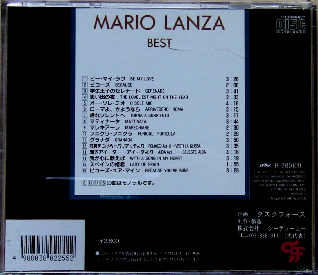 | 【CD】MARIO LANZA / BEST ☆ マリオ・ランツァ・ベスト | ||||