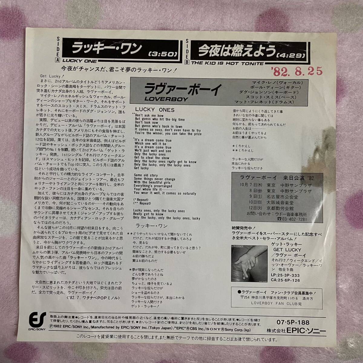 | 【見本盤】【国内盤】【7inch】◆即決◆中古■【LOVERBOY ラヴァーボーイ / LUCKY ONES ラッキーワン / 今夜は燃えよう】7インチ EP■075P188 | |