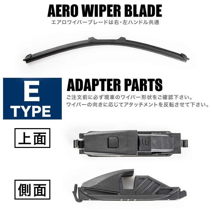| 社外品となります。 ワイパーをスタイリッシュに! スタイリッシュなエアロワイパーでフロントビューをさりげなくドレスアップ グラファイトより長寿命なフッ素樹脂(PTFE)コートラバー採用。 ハンドル向きは関係なく取り付け可能! 付属アタッチメントが反転できるので左右のハンドル向きに対応です ・製品保証付き(発送から1ヶ月間のみ) 【確認事項】 車検証の初年度登録年月で判断せず、必ず商品画像のアダプターを現車と適合判断して下さい。 不明の場合は現車のワイパーの取付部の画像を弊社まで連絡ください。 ※ガラスの湾曲でワイパーの端が浮いた状態になる場合があります。 ※純正サイズと長さが異なる場合があります。 ※スノーワイパーではありません。積雪状態で使用すると破損します。 ※ブレード一体型の為、ゴムのみの交換はできません。 |