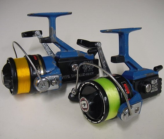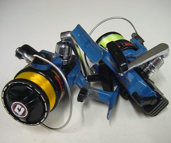 ■2台とも、コンディション的には大差ありませんが、黄色いラインのほうはやや劣るかな??といった感じ::::双方、外観はキズ、ハンドルやベイル耳などに小サビ、使用感、ブルーの金属部に塗膜の腐食浮きを除去したペイントロスなどずいぶんあり、けっこう使い込まれた外観コンディションです。---外観詳細は写真を注視ください。■分解整備済みで、回転性、ベイル、ドラグ、アンチリバース機関もOKです。 ■リール本体2台セットの出品です。ラインは下巻きつないで上も中古ですので軽くテスト、下巻き調整用にどうぞ。こんなキャラのリールですから、巻くラインの色にも気を遣いますね、この色は合っていると思います。------★外観不問で実用、或いは珍品コレクションにいかがでしょうか?