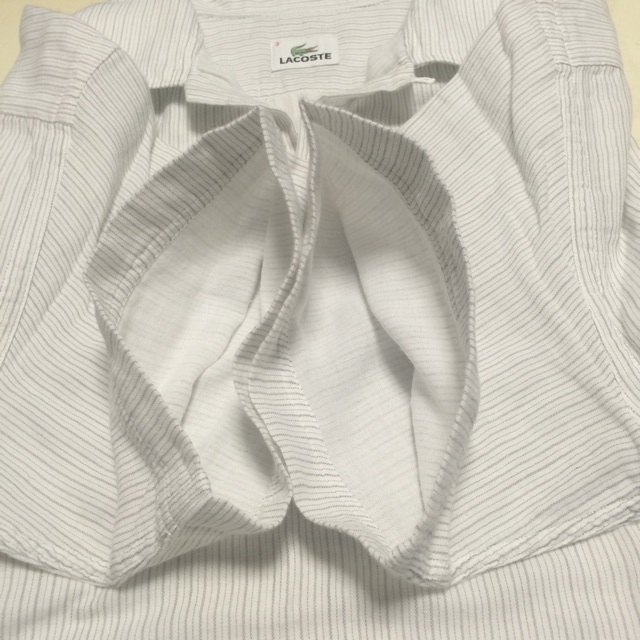 商品説明・状態 | 1.LACOSTE の半袖オープンカラーシャツで、 カバーオールタイプです。 2.白色無地のガーゼ生地にグレーの細線と薄い黄色のストライプ柄です。 3.ファブリカ製です。サイズの合う方いかがですか。 | |