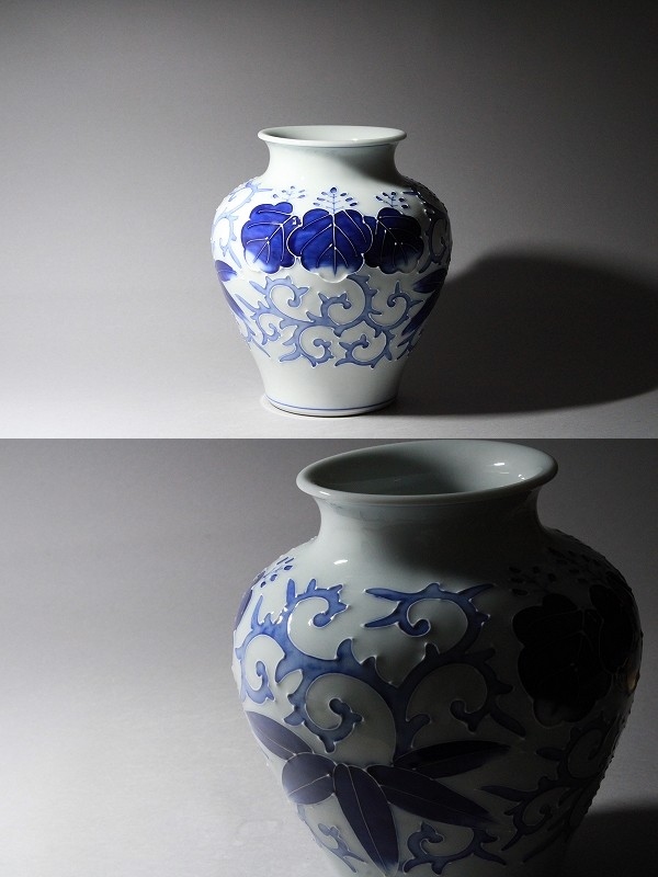 | ■□ 河本礫亭 青華桐竹唐草紋花瓶 □■ | |