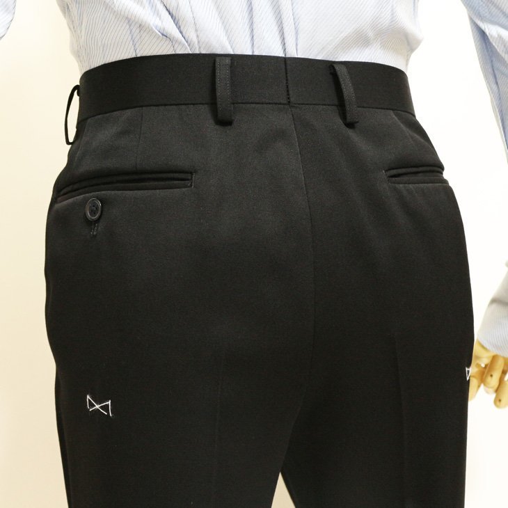 | デザイン | 2つボタンシングル、センターベント、ワンタックちょっとローライズパンツ ウエスト前後6cm調整可能なアジャスター(べレックスα)付き |
