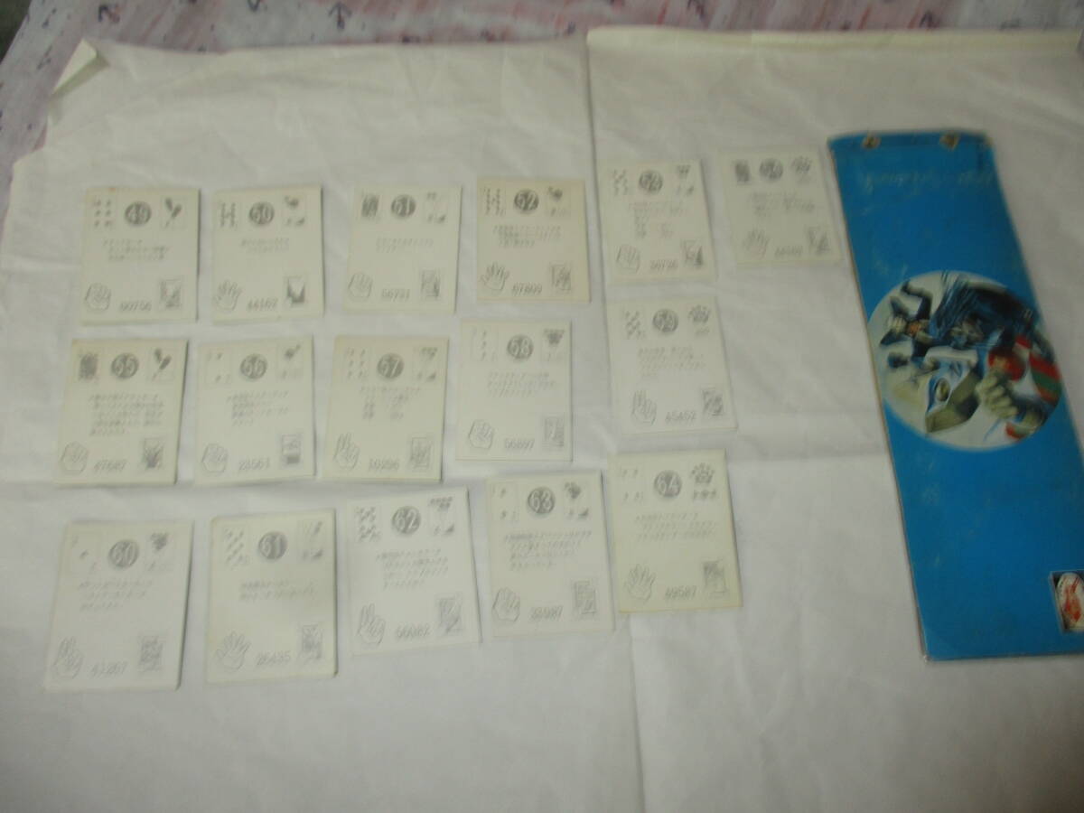 商品説明 | 全64種そろっています。この方が版権のcが細いものより後に販売されていたと思われ 揃えにくいように思います。 解説文と絵柄とのシンクロ度が極めて高い18など魅力的な絵柄が多いですが 1-32と同じ絵柄の33-64をそろえなければ完全にならないため 1990年代半ばのコナミ全盛期のシューティングゲームやっているような気分になります。 アルバムはしわや汚れがあり傷んでいます。 カードは極力綺麗なものをそろえましたが61など少し傷んでいるものも含まれます。 発送方法はレターパックのみです。定形外郵便などほかの方法は対応できません。 落札決定後要望があった場合は落札者都合による取り消し処置を執りますので ご了承願います。 |