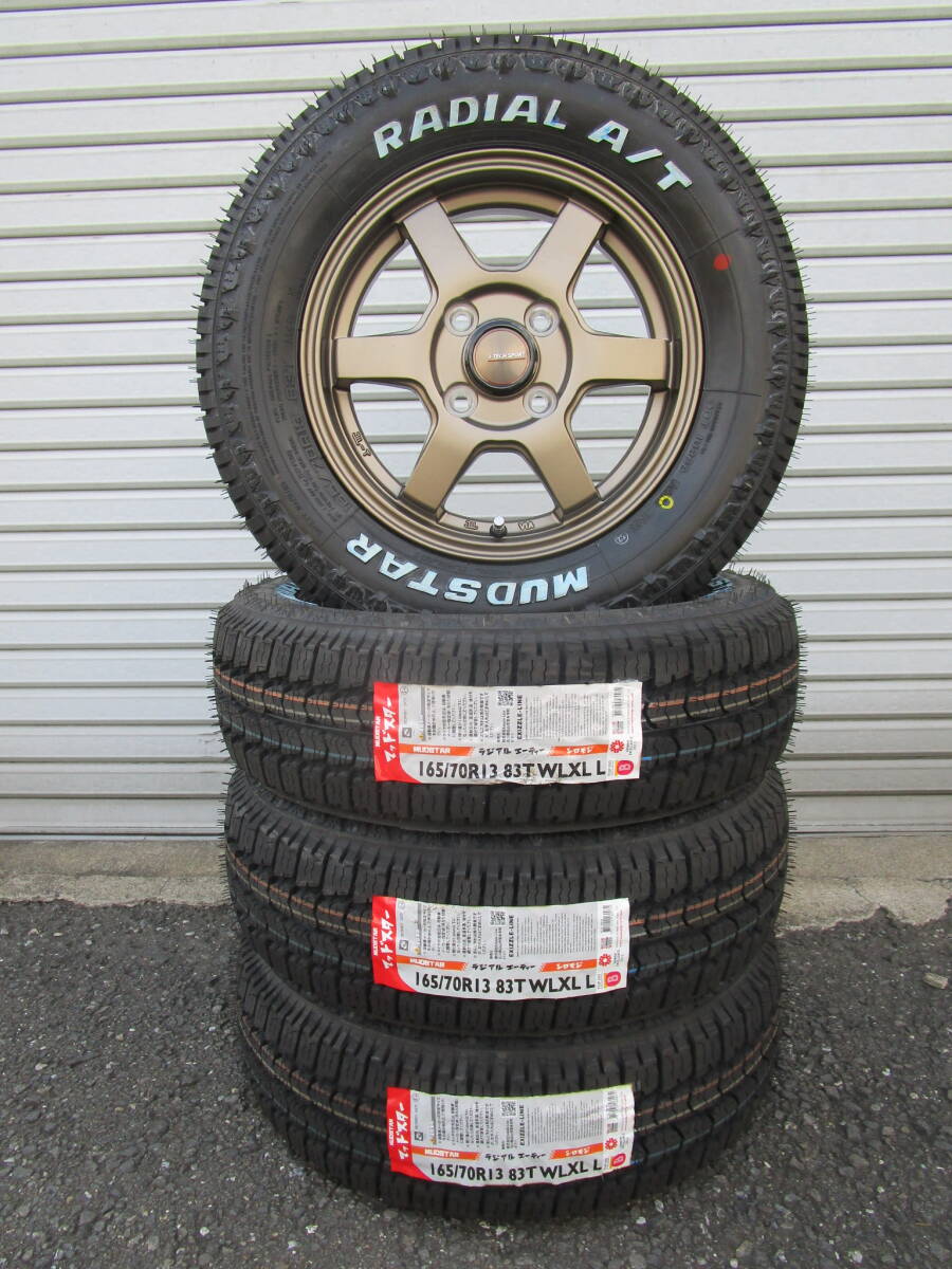商品詳細 【ホイールサイズ】 F:R 13×4.0J オフセット+43 PCD:100-4H 【タイヤサイズ】 F:R 165/70R13 新品 マッドスターラジアルA/T ・ホイールは新品未使用品です。 ・カラーは、ブロンズになります。 ・新品未使用品ですが、多少の汚れや小傷等はご了承下さい。 ・タイヤは新品未使用品です。 ・製造年数は、2025年製です。 ・製造年・製造週はご指定出来ません。 ・ラベルの剥がれや、色褪せ等はご了承下さい。 ※ホイールとタイヤの状態は画像を参考にして下さい。 ※タイヤとホイールに組込み後、エアーとバランス調整してから発送致します。 ※マッチング等はご落札前に必ずネットやお店等でお調べ下さい※ (題名に記載がある車両でもマッチング等は必ずお調べ下さい) | |||