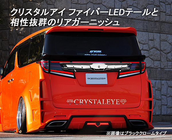 ▼ 出品内容 商品番号:J250BN 車種:30アルファード/ヴェルファイア 商品名:リアガーニッシュ カラー:ブラッククローム ※落札後のカラー変更はご対応致しかねますので ご入札前に必ずカラーをご確認下さい。 ▼ 商品説明 30系 ヴェルファイア/アルファード 後期型に クリスタルアイ LEDテールを装着する際に必要になる CRYSTAL EYEオリジナルのリアガーニッシュ こちらは、V1より立体的なダクト形状を取り入れたバージョン2です。 クリスタルアイのファイバーLEDテールに 合わせてデザインされたガーニッシュは、 後方に向かって伸びるダックテール形状を取り入れながらも 後期純正のラインを入れつつスポーティーに仕上げました。 こちらのリアガーニッシュを装着することで スタイリッシュなリアビューを構築することができます。 センター部分にクリスタルアイエンブレム付き。 (純正エンブレムやお好みのエンブレムの流用可能) ▼ 対応車種 30系アルファード/ヴェルファイア クリスタルアイ ファイバーLEDテール(前期/後期用)装着車 30系ヴェルファイア 前期(~2017年12月) (純正テールランプにも装着可能です。) |