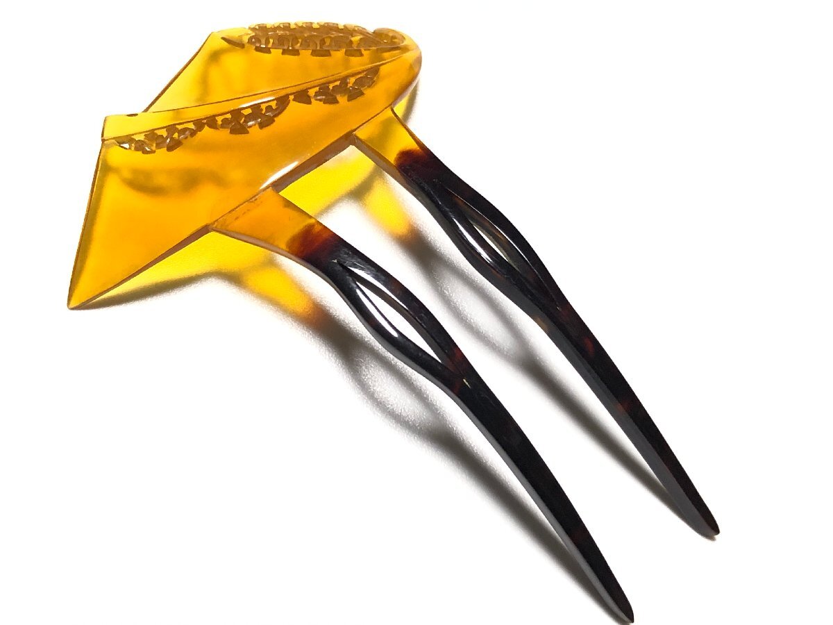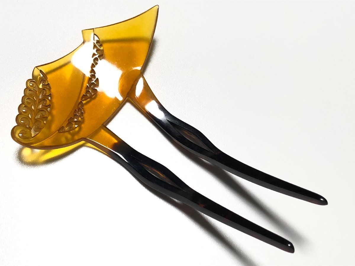 アンティークの白甲・黒甲の本鼈甲を使用した、透かし唐草細工の扇簪です。片方の付け根に鼈甲素材で補強された跡があります。鼈甲部分に欠けや虫食いはありません。| 出价者 | 信用 | 价格 | 时间 |