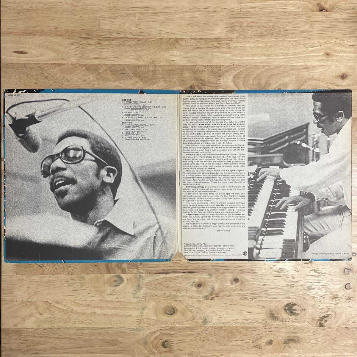 イントロと中盤にドラムブレイクがあるB3「Need Mo'」、Jimmy Smithが燻し銀の歌声を披露するA2「(Sittin' on)