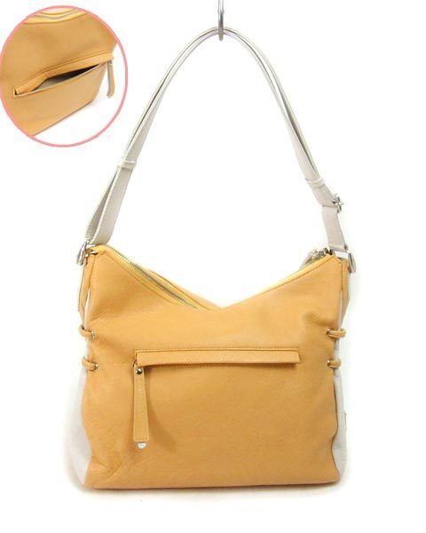 | 優しい黄色と白の上品なショルダーバッグ。柔らかい上質な革使いで、エレガントにお持ちいただけます。内側にはファスナーポケット、大小のスリットポケットがあります。外側にもファスナーポケットがありますので、使い勝手の良い便利なおつくりです。 |