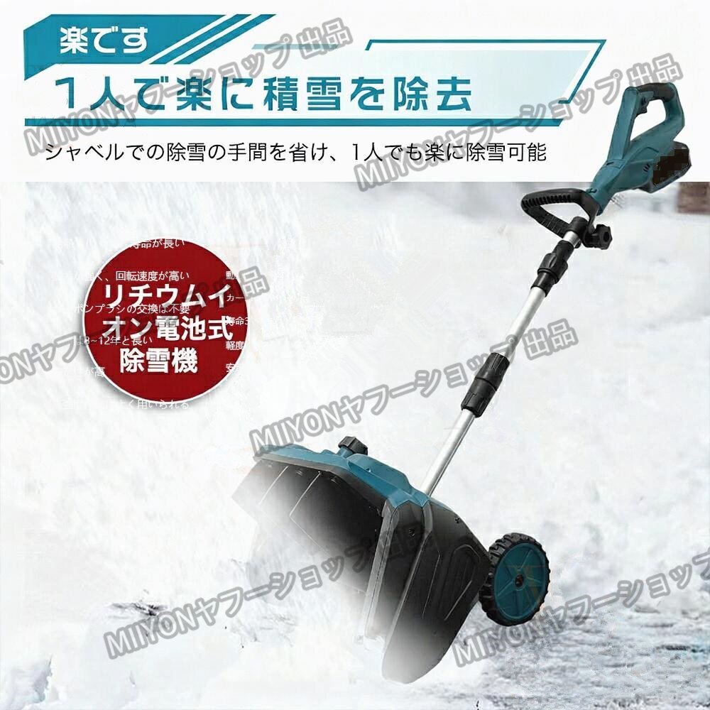【低騒音雪かきスコップ】 電動除雪機のエンジンは、従来のガス除雪機に比べ、作業時の騒音が非常に小さくなっています。 そのため、除雪作業中に近隣住民に迷惑をかけたり、騒音公害を引き起こしたりすることはありません。電動除雪機は効率的に雪を取り除き、静かな除雪体験をお楽しみいただけます。