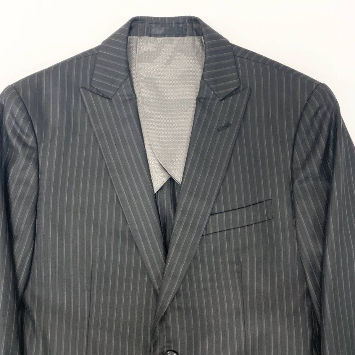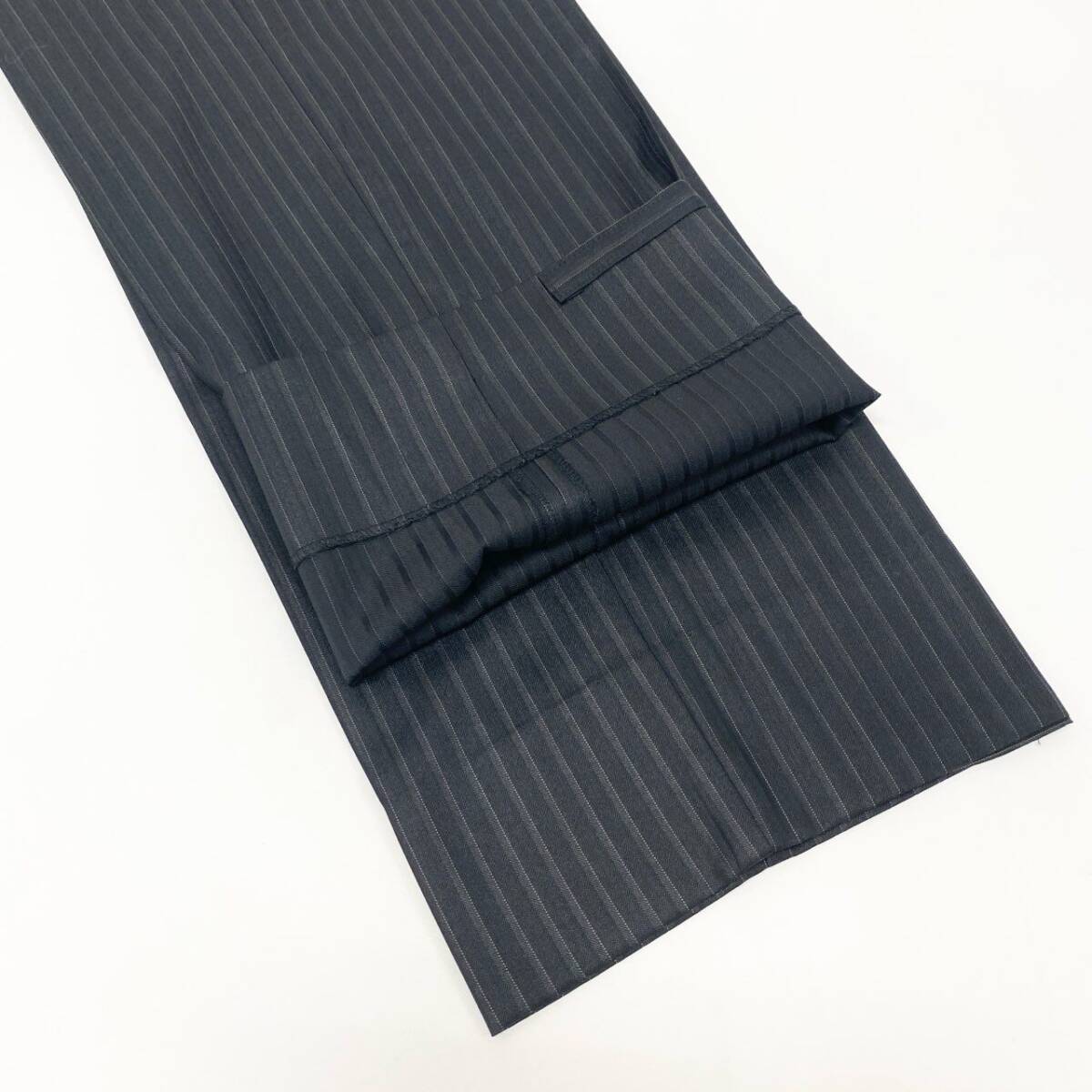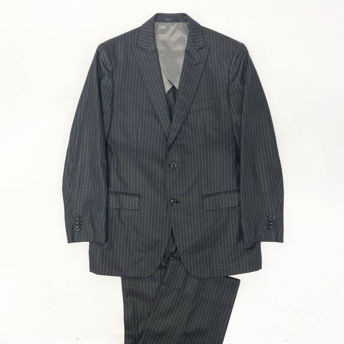 | スタッフ商品コメント | 色は落ち着きのあるチャコールグレーに細かなピンストライプが入り、ビジネスシーンで好印象を与える上品なセットアップです。ウールブレンド素材特有の控えめな光沢と柔らかなタッチがあり、背抜き仕様のため軽く通気性も良く、長時間の着用でも快適です。2ボタンのベーシックなデザインで流行に左右されず、幅広いシーンに対応。パンツは自然なストレートラインで脚をすっきり見せるシルエットに仕上がっています。日常の通勤からフォーマルな場面まで万能に活躍する一着です。 |