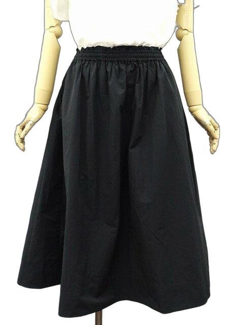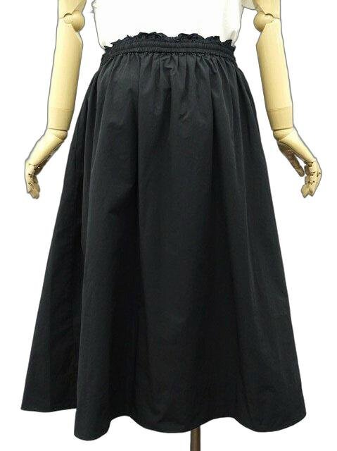 ロング丈 洗えるギャザーフレアスカート M-L ブラック