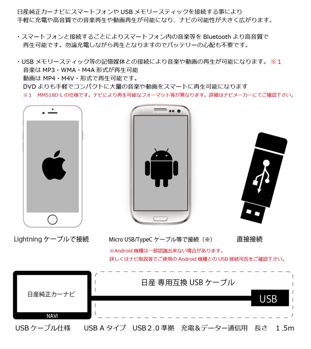| ・日産純正カーナビ用互換USBケーブル 1.5m |