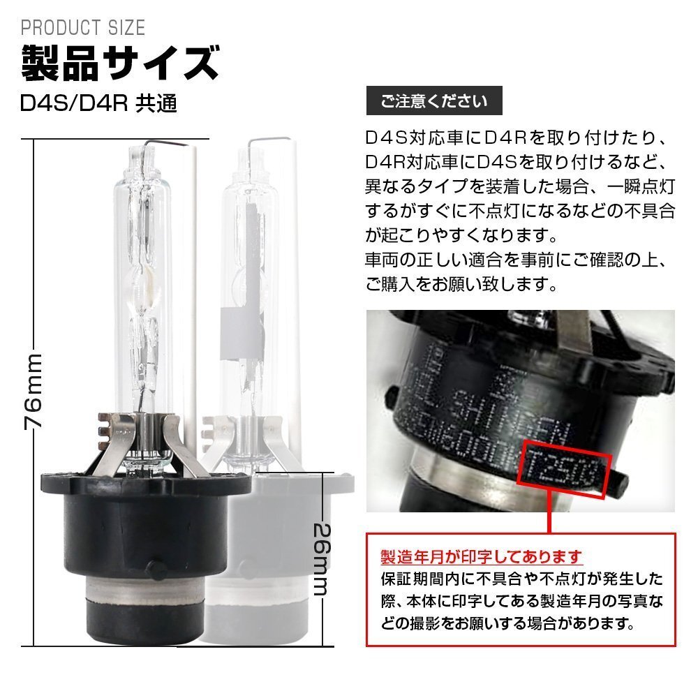 | ●ご購入にあたって ※ご注文後の商品の変更・キャンセルは基本的に出来ませんので、ご注意下さい。 ・商品は通常ストックがございますが、複数店舗で運営しているため、人気商品や品薄商品に注文が重なった場合、稀に在庫切れとなる場合がございます。 ・商品は海外生産の為、若干のスレや汚れがある場合がございます。また、製造時期やロットにより、外観が一部異なる場合がございます。使用上には問題ございませんので、ご理解の上でご購入をお願いいたします。 ・お車の適合に関しては車種別適合表でご確認ください。適合表に記載がない場合は、専門業者又はディーラーでご確認をお願いいたします。 (適合表は車種別のバルブの形状を記載しているのものであり、装着の可否を示したものではございません。) ・バルブ形状が一致していても、スペース不足、レンズ内の距離等により設置不可となる場合がありますので、ご購入の前に必ず現車にてご確認ください。 ※一部の車種、年式、グレードによっては、加工や部品(バルブ固定アダプタ等)が必要な場合がございます。 ※適合表に記載があっても特別仕様車等でバルブタイプが異なる場合がございます。ご購入前に必ず取り付ける車両でバルブタイプをご確認ください。 ・最終的なお取り付けの可否につきましては、お客様ご自身でご判断いただきますようお願い致します。 ・初期不良の確認の為に、取付加工を行う前に、必ず点灯チェックを行ってください。 ・不具合発生時に装着前の状態に戻せるよう、装着の際に外された部品は必ず保管しておいてください。 ・如何なる理由があろうとも脱着作業に掛かった工賃やその他諸費用はご負担致しかねます。予めご了承ください。 ●車検対応について ・4300K、6000Kは車検対応商品ですが(HID H4 Loは車検不対応)、必ず検査に合格することを保証するものではありません。ヘッドライトの形状によりカットラインがしっかり出ない場合や、陸運局の判断により不適合と判断される場合もありますので車検の際は純正バルブに戻して検査されることをお勧めいたします。 上記理由より、ヘッドライトをHIDキットに換装された際は、必ず純正バルブを保管しておくよう、お願いいたします。 ●HIDに関して ・お車の適合に関しては車種別適合表でご確認ください。適合表に記載がない場合は、専門業者又はディーラーでご確認をお願いいたします。 ※一部の車種、年式、グレードによっては、加工や部品(バルブ固定アダプタ等)が必要な場合がございます。 ※適合表に記載があっても特別仕様車等でバルブタイプが異なる場合がございます。ご購入前に必ず取り付ける車両でバルブタイプをご確認ください。 ・HIDの特性により新品バルブは点灯直後にチラつく場合がありますが故障ではありません。新品から24時間程度で点灯させることで安定いたします。 ・バルブのガラス部分を直接手で触れたり、油分のついた軍手等で触れると、寿命が短くなる恐れがあり、最悪の場合はバルブが破裂する危険性があります。 ガラス部分には絶対に触れないで下さい。万が一、油分が付着した場合は、アルコールで十分に除去した上でご使用下さい。(※取扱い方法が原因の故障は保証対象外となりますのでご注意ください) ・一部車種では玉切れ警告灯が点灯する場合やハイビームインジケーターが使用できない場合があります。 (ハイビームインジケータ不点灯防止ユニットで解消する場合がございますのでお試しください) ・一部車種では電圧の不安定が原因で点灯不良を起こす場合があります。 (別売の電源安定性強化リレーをご購入下さい) ・オートライト機能付きの一部車種ではオートライトが正常に動作しなくなる場合があります。 ・アイドリングストップ車にも対応していますが、電力不足によりチラツキや消灯の症状が出る場合があります。 (別売の電源安定性強化リレーをご購入下さい) ・H8/H9/H11/H16は兼用商品となっておりますが、一部加工が必要な場合もあります。 ・H3をH3aに、またはH3CをH3dに使用する際は、バルブの台座爪部分に加工が必要になります。 ・車両の電圧および極性について、シングルバーナー及びH4Lの場合、車両によっては片側が点灯しない、または両方点灯しない等の現象がある場合には車両側から供給される電源の極性(+/-)が逆になっている場合があります。 その場合には製品に必要な電源電圧および極性の向きに合った電源を供給する事が必要です。間違った電圧や極性では製品は作動しません。バラストへの12V入力ソケットを180度反対に差し込むと点灯致します。製品の不良ではありませんのでご安心ください。 ・初期不良の確認の為に、取付加工を行う前に、必ず点灯チェックを行ってください。 ・取り付け後点灯しない場合は、接触不良等が考えられますので、しっかり装着されているかをご確認ください。それでも点灯しない場合は左右を入れ替えて点灯チェックをしてくだ