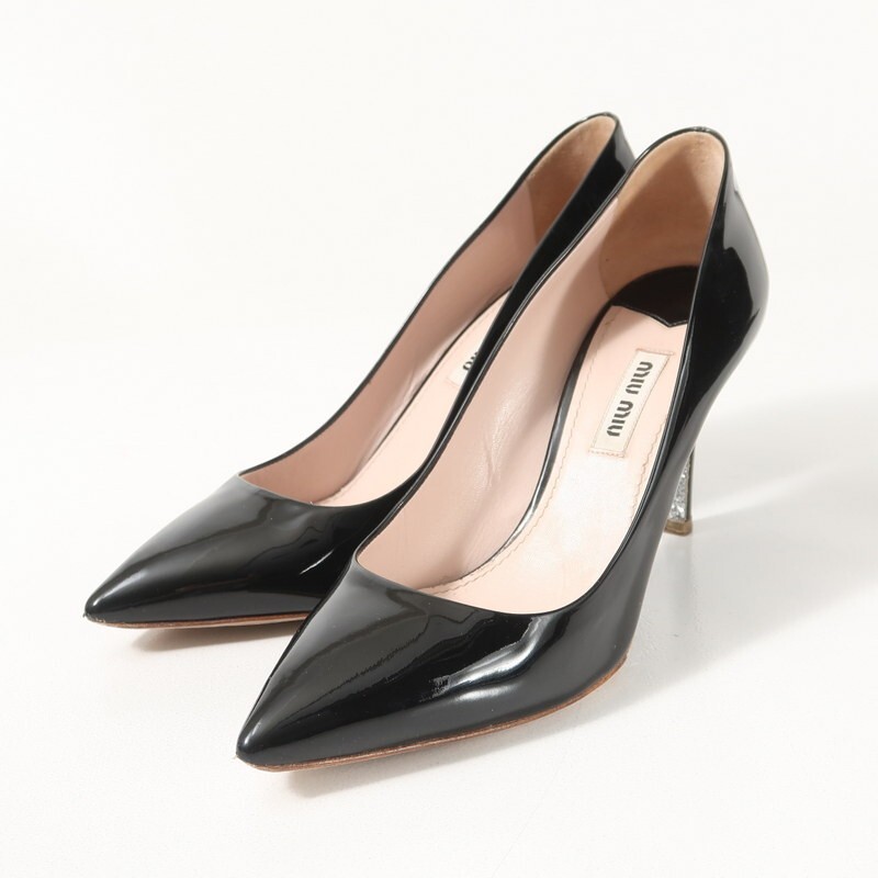 | GS5955▼ミュウミュウ miumiu*パテントレザー ポインテッドトゥ パンプス 37(23.5cm相当) 靴 グリッター ブラック | |||