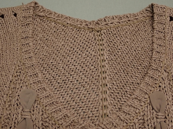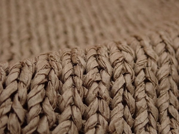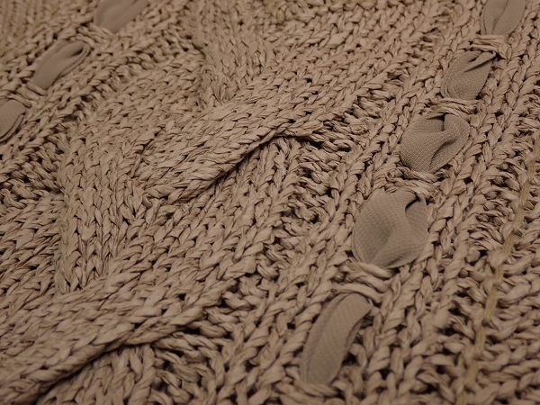| 色 ブラウンベージュ 素材 ニット部分 指定外繊維(紙)74% コットン26% シフォン ポリエステル100% | |
