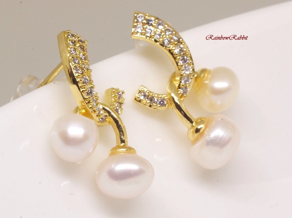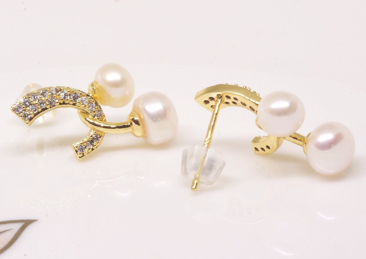 18K RGP ゴールド ダイヤ CZ フラワー パール ピアス gp5705 |