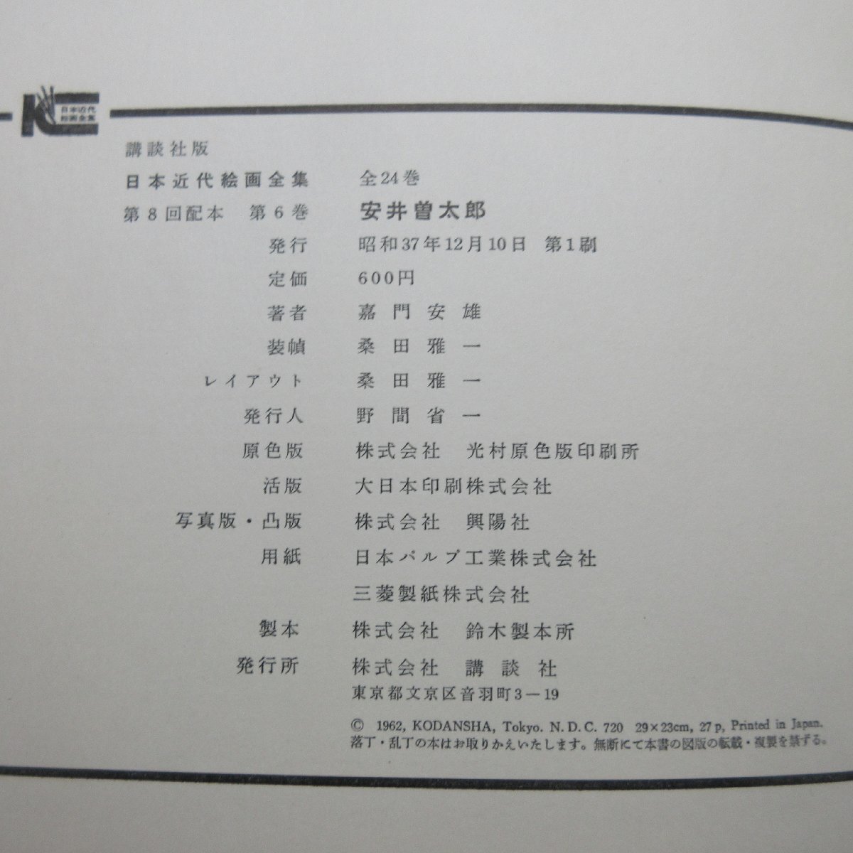 VA901●安井曽太郎 日本近代絵画全集 第8回配本 第6巻 講談社 | お願い |