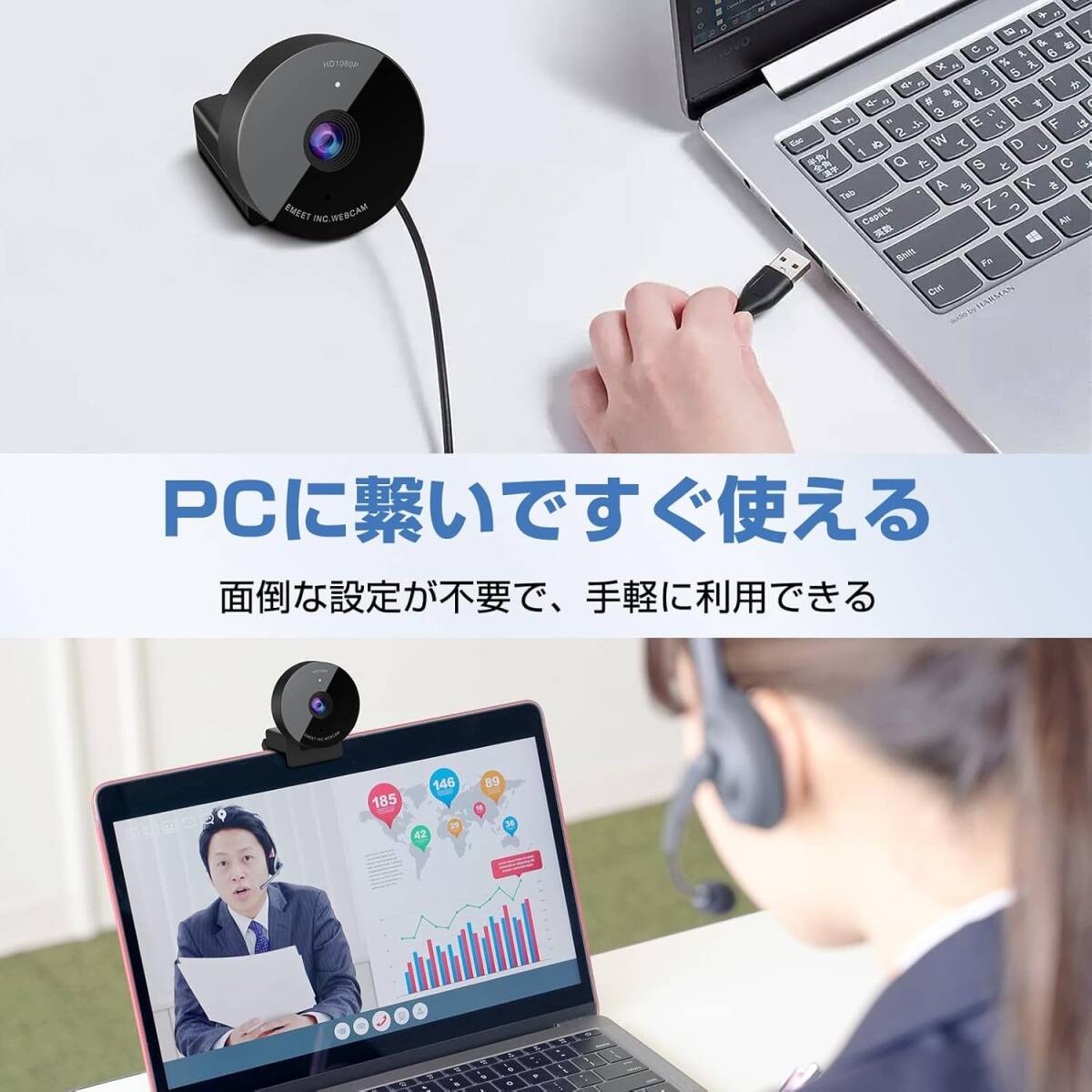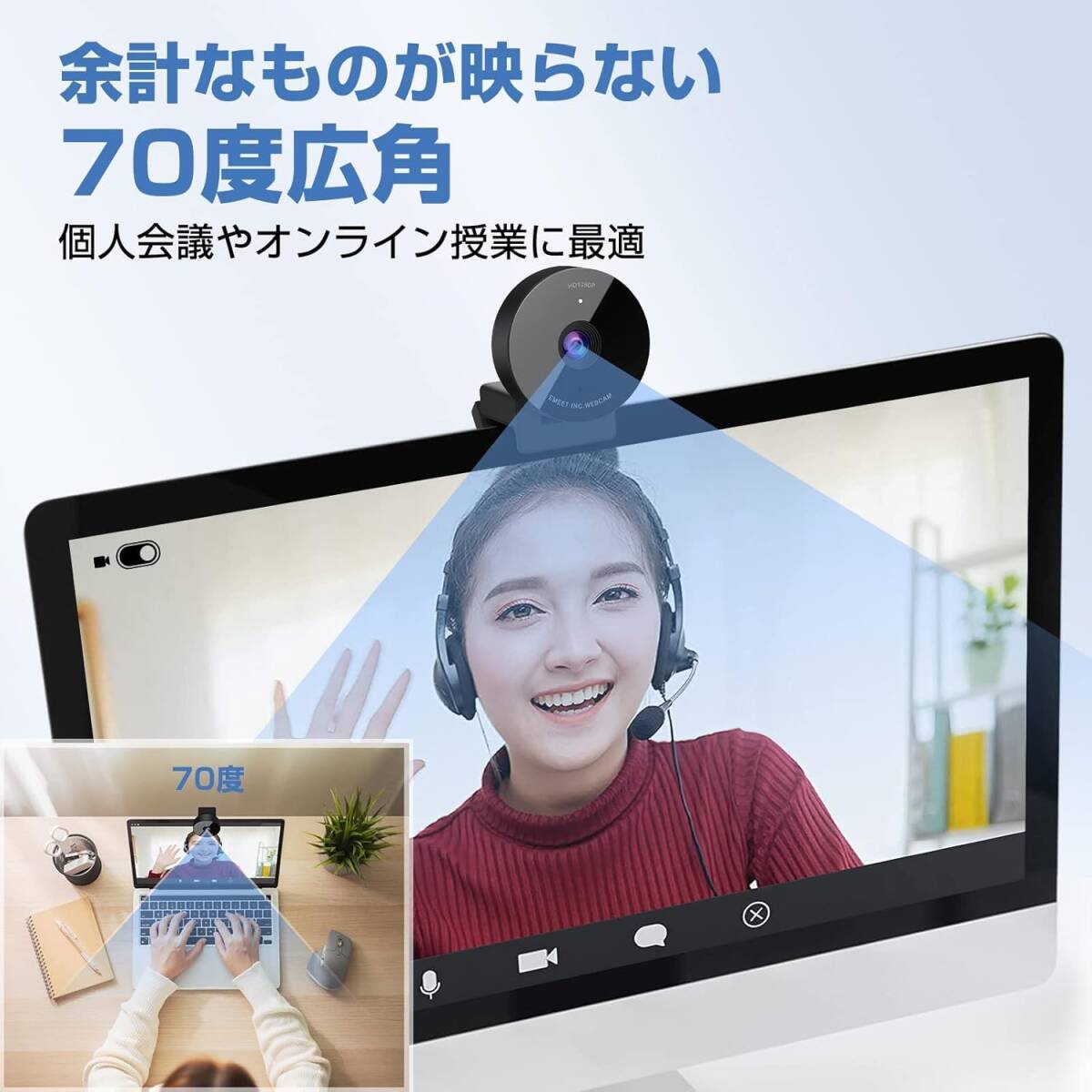 ご覧いただきありがとうございます。 商品名:ウェブカメラ 【この商品が品質で選ばれる理由】 フルHD高画質と内蔵マイクによるクリアな音声で、快適なオンラインコミュニケーションを実現します。 ■こんな悩みありませんか? ・ウェブ会議で自分の映像が暗く、相手に見えにくい。 ・オンライン授業で資料がぼやけて見えづらい。 ★こんな時におすすめ! ・自宅でのリモートワークやオンライン会議に。 ・オンライン授業やセミナーの受講、開催に。 ・家族や友人とのビデオ通話に。 ------------------------------------- ◆商品説明 【高画質・広角】 ・フル1080p高画質で、クリアで滑らかな映像を30fpsで実現します。 ・HD光補正により、暗い場所でも明るく鮮明な画像が撮影できます。 ・70度の広角レンズにより、個人での使用に最適です。 ・固定フォーカスレンズで、ピント調整の煩わしさから解放されます。 【高音質】 ・全方向マイクを内蔵し、クリアな音声を拾います。 ・ノイズキャンセリング機能により、通話中の雑音を軽減します。 【使いやすさ】 ・ドライバー不要で、USBに接続するだけですぐに使用できます。 ・軽量かつコンパクトなサイズで、持ち運びや収納に便利です。 ・目隠しカバー付きで、プライバシー保護も安心です。 ・Windows、macOS、Android、Lunixなど、様々なOSに対応しています。 ・Skype、LINE、zoomなど、多くのソフトウェアで利用可能です。 【付属品】 ・目隠しカバー ご不明な点などございましたら お気軽に「質問する」からお問い合わせください。 |