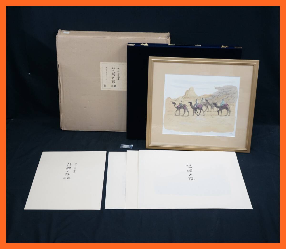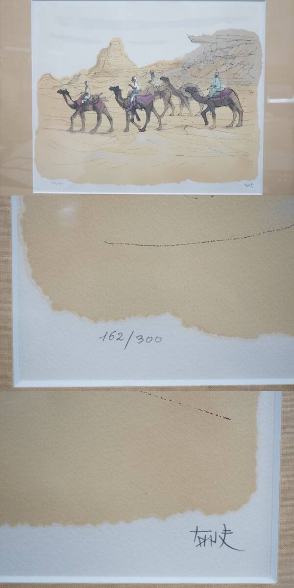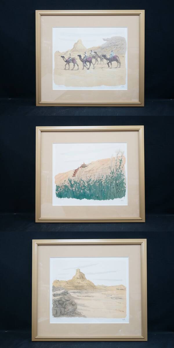| 東ハ:【平山郁夫 石版画集】真作 平山郁夫 版画集「 絲綢之路 」石版画三葉入 額装品3種セット 限定300部 162/300 リトグラフ ★送料無料★ |
