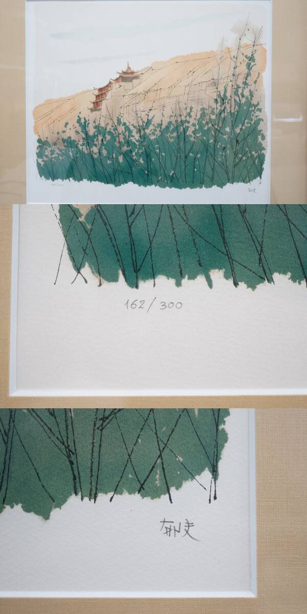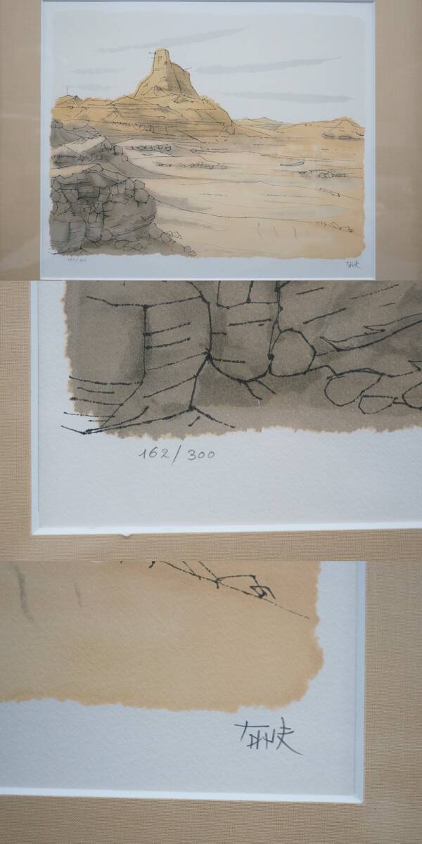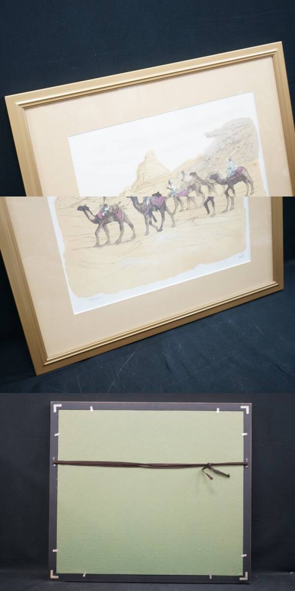 ■東ハ:【平山郁夫 石版画集】真作 平山郁夫 版画集「 絲綢之路 」石版画三葉入 額装品3種セット 限定300部 162/300 リトグラフ ★送料無料★■ 1990年発行 石版画集「 平山郁夫 石版画集 絲綢之路 石版画三葉入 」 限定300部になります。 【 平山 郁夫(ひらやま いくお )略 歴 】 1930-2009 日本画家。 瀬戸内海の生口島生れ。 1945年、動員先の広島陸軍兵器支廠で被爆。 東京美術学校(現東京芸術大学)日本画料で学び、前田青邨に師事。 卒業後、同校助手となり、助教授、教授を経て、学長に就任。 ネスコ親善大使、アンコールワットの修復活動、中東の文化財保護などの社会活動を実施。 150度以上シルクロード、仏蹟の取材を行った。 1972年から終生、鎌倉二階堂に自宅兼アトリエを構えていた。 1993年 文化功労者 1998年 文化勲章受賞 2000年 奈良・薬師寺玄奘三蔵院「大唐西域壁画」完成 2009年 逝去 鎌倉名誉市民。シルクロードをテーマとした作品が特に人気がある。 東京藝術大学学長(1989~1995、2001~2005)。日本美術院理事長。 【 作 品 名 】 「 敦煌 」「 楼蘭 」「 絲綢之路 」 【 作 家 名 】 平山 郁夫 【 技 法 】 石版画 【 E D No. 】 ・石版画集 限定三〇〇部の内壱六弐 ・石版画 162/300 【 額 寸 】 (約)縦56.0× 横63.0 ×厚み2.0 cm×3点 【 画 寸 】 (約)縦35.7 × 横42.8 cm×3点 【 サ イ ン 】 各作品右下にサイン、左下にエディションNo.有り 【コンディション】 中古のお品となります。 付属品は写真にあるものが全てです。 使用・経年に伴うシミ・ヨゴレ、マット紙縁の一部にめくれ、額にキズ・ケズレなどがございます。 外装箱(外箱)にヤブレ・穴あき・シミヨゴレなどが複数ございます。 当店では、古いものを扱っておりますため、時代経過による汚れ・スレなどがございます。 新品(完全品)をお求めの方は、ご入札をお控えください。 状態につきまして、不明な点などございましたら商品説明欄の質問欄より事前にお気軽にご質問ください。 画像をよくご覧になられお客様のご納得の上、責任を負える範囲でのご入札をお願い致します。 ※真作保証品が、万が一公定鑑定人・公定鑑定機関で真作でないという判断がなされた場合は、 ご入金頂いた金額をご返金させていただきます。 ■商品画像について■ ご使用モニター環境などによっては、多少色合いなどが異なって見える場合がございます。 予めご了承いただけますようお願い申し上げます。 商品画像をよくご確認の上、ご参加ください。 [管理No.25061313R1] |