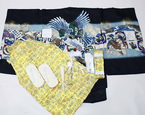 | 項目 | 五歳羽織袴フルセット ・羽織 ・着物 ・長襦袢 ・袴 ・草履 ・角帯 ・扇子 ・短剣 ・羽織紐 ・お守り |
