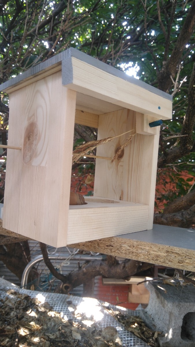 ☆①小鳥の餌箱(キヤツプタイプ )①の特徴。(1)の青のピン穴に稲穂等をセツト。(2)の赤の串穴に果実等をセツト。(3)のキヤツプに小鳥の餌 水等をセツト。(1)(2)(3)を食べにくる所を鑑賞 観察して楽しむ商品です。商品の大きさ 70Χ90ミリの長方形 床面から屋根裏まで約115ミリ 30ミリ丸キヤツプ3ケ所 稲穂 米 果実1回分付き ☆②小鳥 小動物兼用餌箱②の特徴。(1)の青のピン穴に稲穂等をセツト。(2)の赤の串穴に果実等をセツト。(3)45ミリ丸穴に小鳥の餌小動物の餌をセツト。(1)(2)(3)を食べにくる所を鑑賞観察して楽しむ商品です。商品の大きさ 90Χ120ミリの長方形 床面から屋根裏まで約115ミリ 餌入れ穴45ミリ丸2ヶ所 稲穂 果実 木の実1回分付き。〈送料消費税込み 発送ヤクネコおてがる配送扱い〉以上2タイプのまとめ出品。