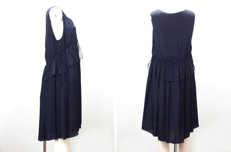 コメント | シーバイクロエより腰回りのフリルと軽やかなプリーツスカートがお洒落な、ワンピースドレスが入荷いたしました。サイドにはリップモチーフの金具が付いた細身のリボンが揺れ動き、上品な甘さと女性らしさが溢れる逸品です。光に当たると透け感がございます。ポケット無し。 |