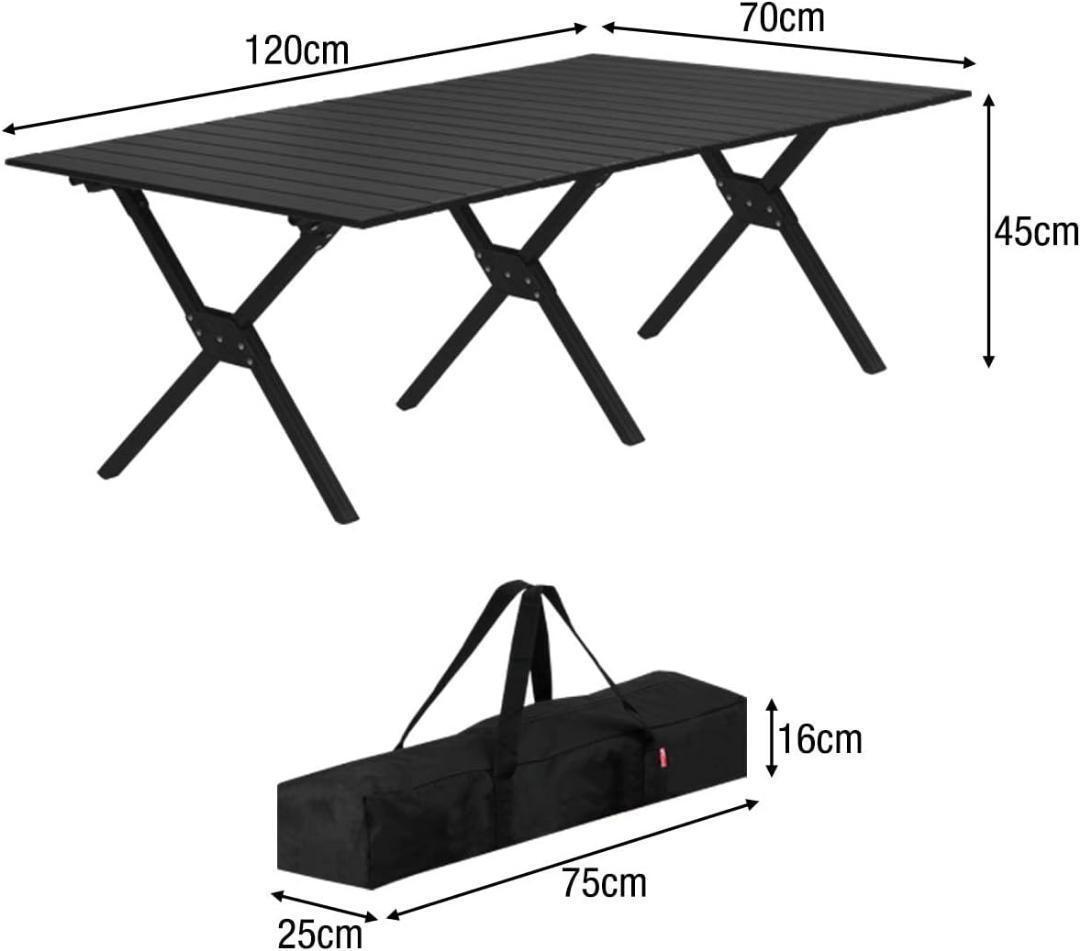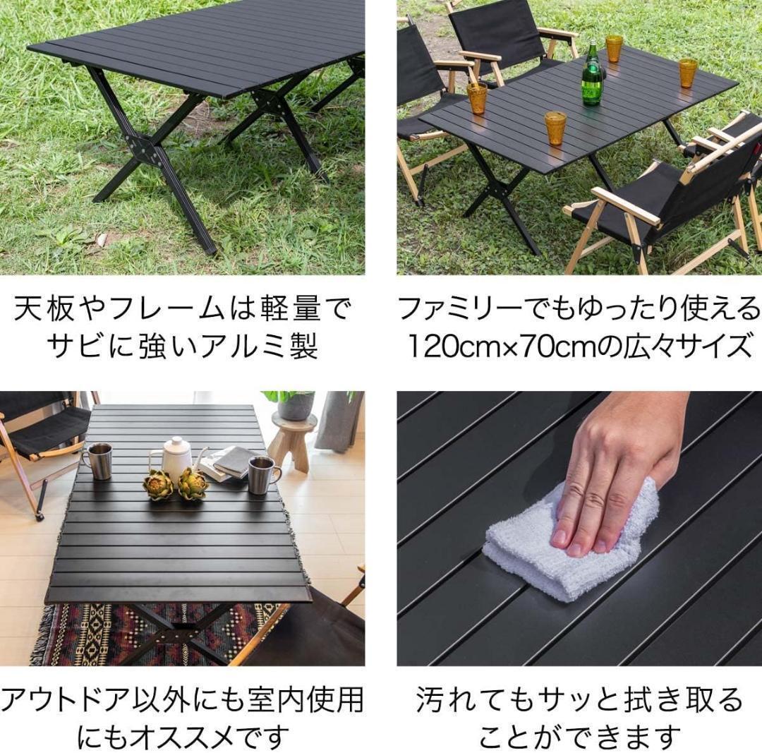 アウトドア テーブル アルミ ロールテーブル ブラック キャンプ 120cm