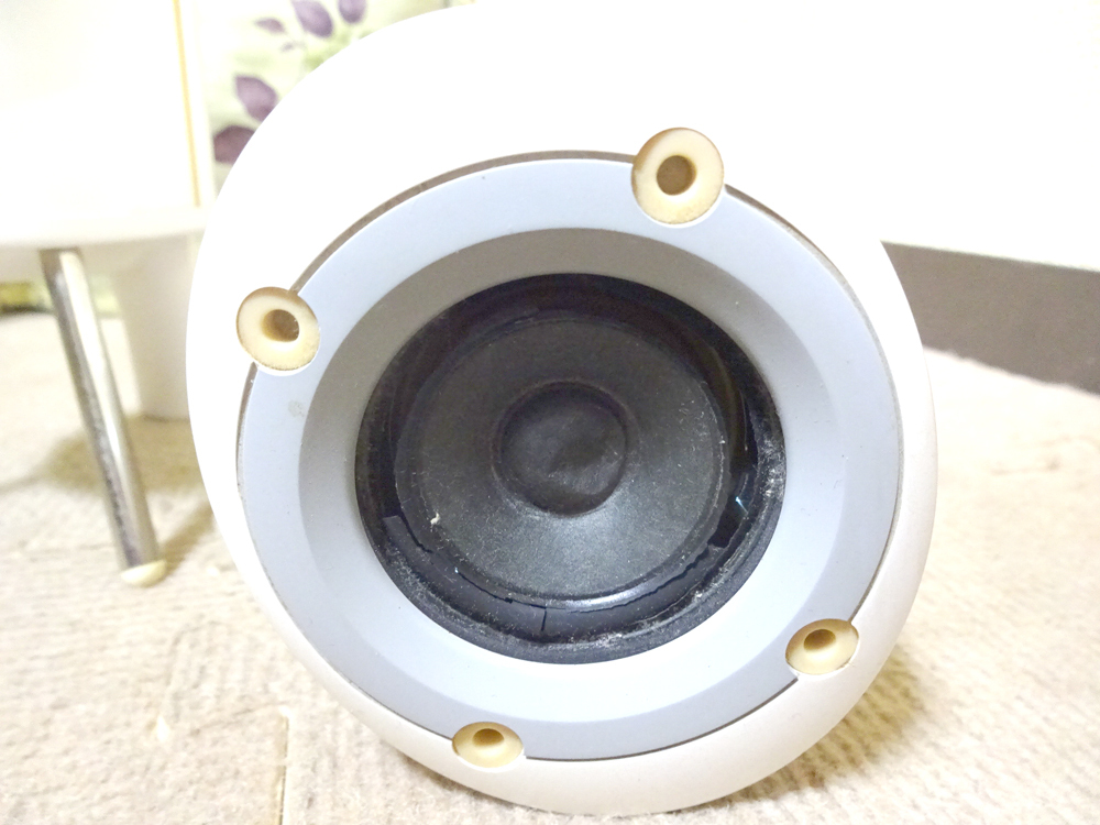 | ご覧頂き有難うございます。 アンプ内蔵のアクティブスピーカーになると思うのですが、 ACアダプター欠品につき、ノーチェックになります。 音が出るか全く不明です。 スピーカーのウーファー部の状態も良くありません。 片方は、エッジの落ち、中心部の突き、もう片方は、エッジはありますが、 中心部に突きがあります。 写真参照してください。 ジャンクとしての出品とさせていただきますので、ご了承下さい。 元箱ありますが、穴あき、ガムテープにて補強してあります。 奇麗ではありません。ご了承ください。 元箱にプチプチを巻いてお送りします。 本体のみの出品です。接続線等他のものございません。 汚れ傷あります。神経質な方のご入札は、お控え下さい。 ジャンクですので、一切ノークレームにてお願いいたします。 落札者様より先にご連絡お願いします。 評価等の事も明記してありますので、入札前に注意事項をご覧の上ご入札下さい。 | |||
