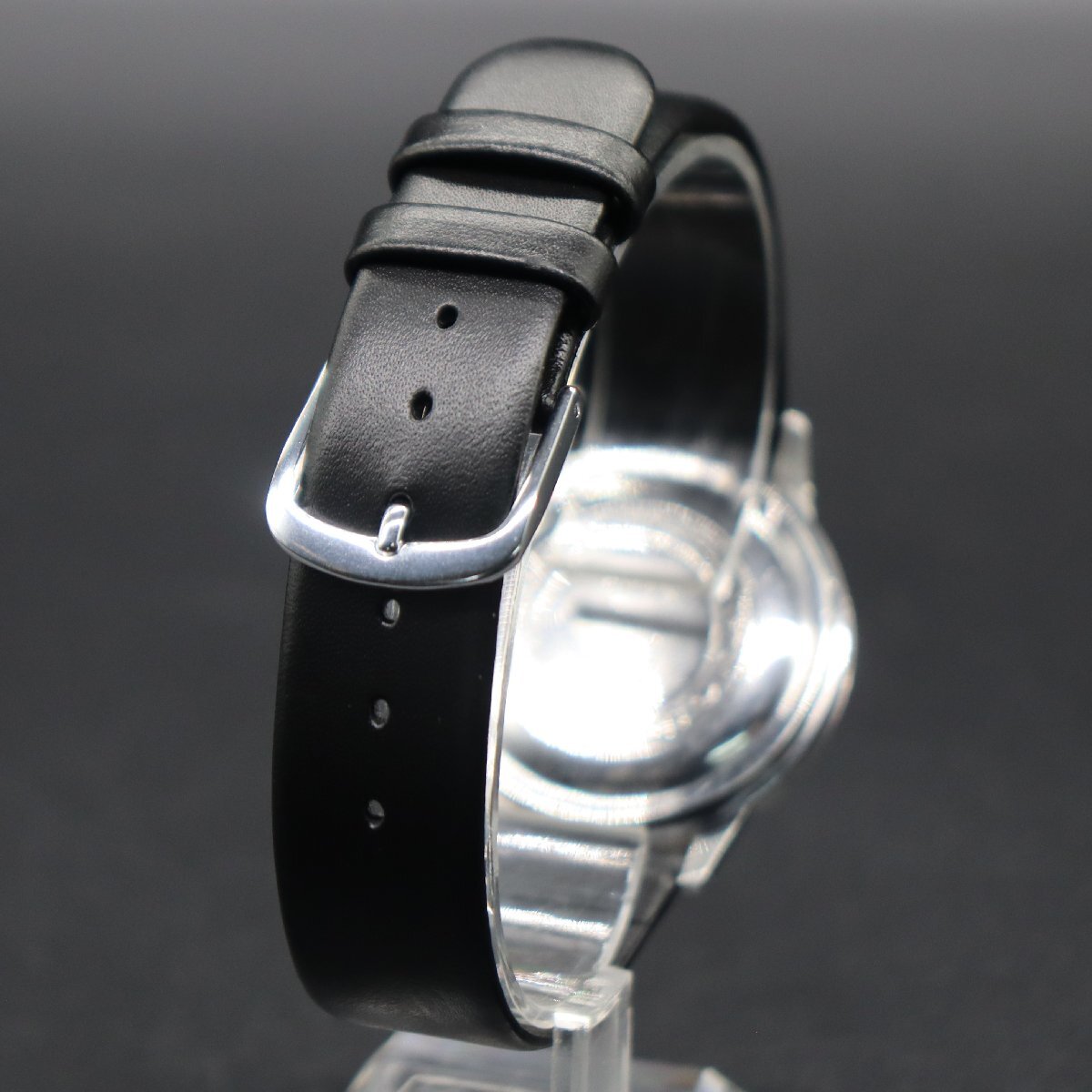 平置きで12時間動作確認済み、大幅な遅れなく稼働中です。 リューズ巻き止まりOK、一段引きで時間調整、 ※アンティーク時計を長くお使いいただくため、 丁寧に、やさしく操作していただくようお願いいたします。 全体に経年使用に伴うキズ・打痕・小汚れ、 風防に複数のヒビがございますが、視認性は保たれております。 文字盤にシミなどの経年の傷み見受けられますが、 針・インデックスは比較的傷み少なく、経年の割りに良好です。 筆記体ロゴや印字、消え擦れはございません。 リューズ、Wマーク付きです。 裏蓋のタツノオトシゴマーク、一部スレございますが、 周囲の刻印、鮮明です。 ベルトは、新品の国内メーカー製革ベルトに交換済みです。 アンティークですので、詳しくは画像にてご判断願います。 | |