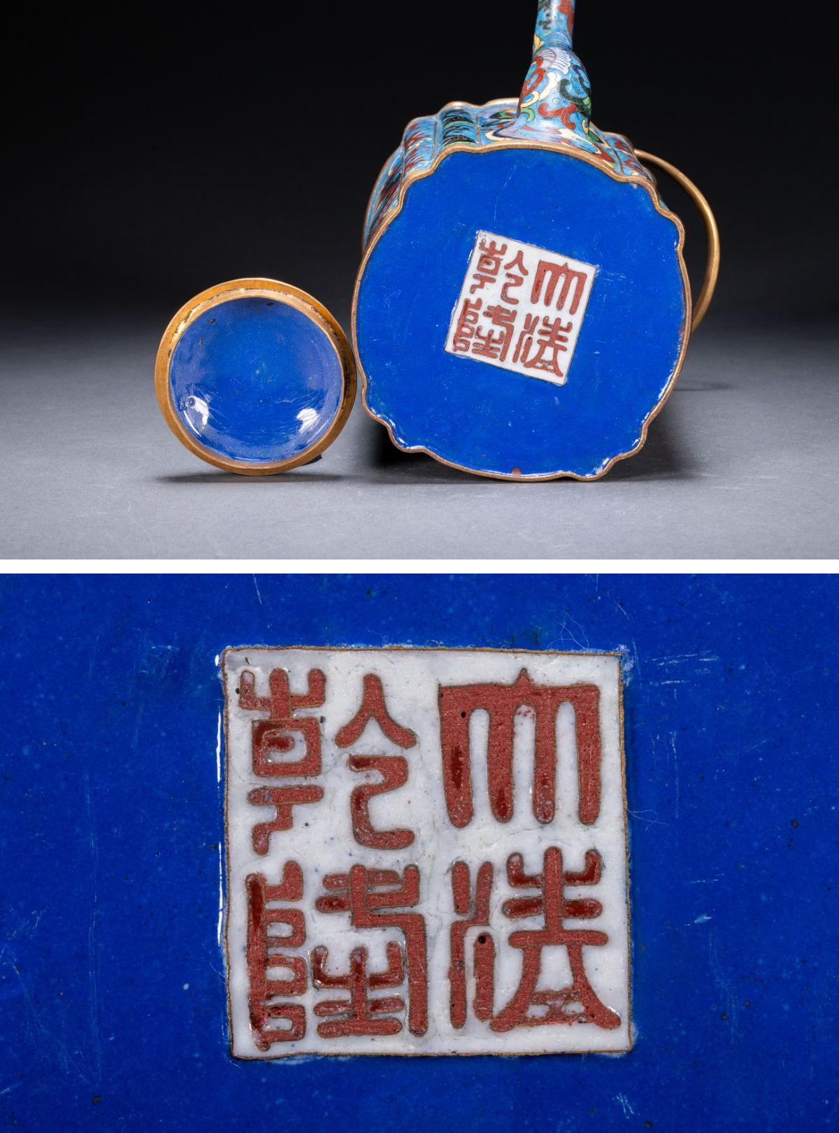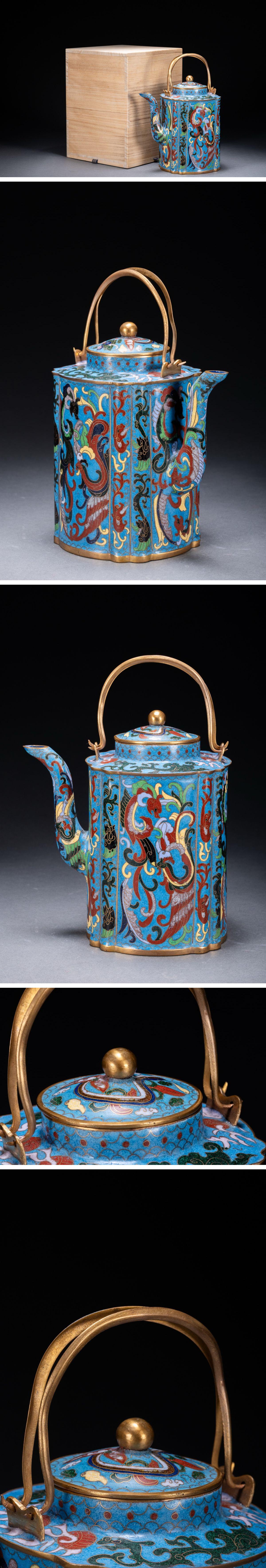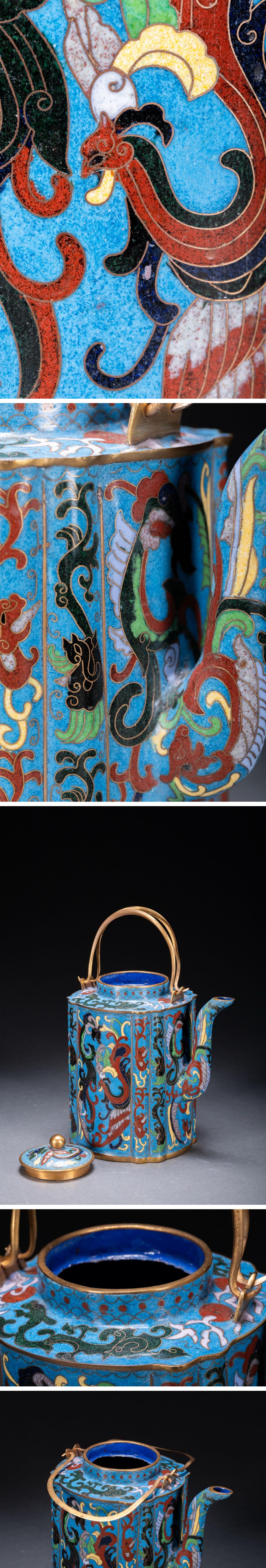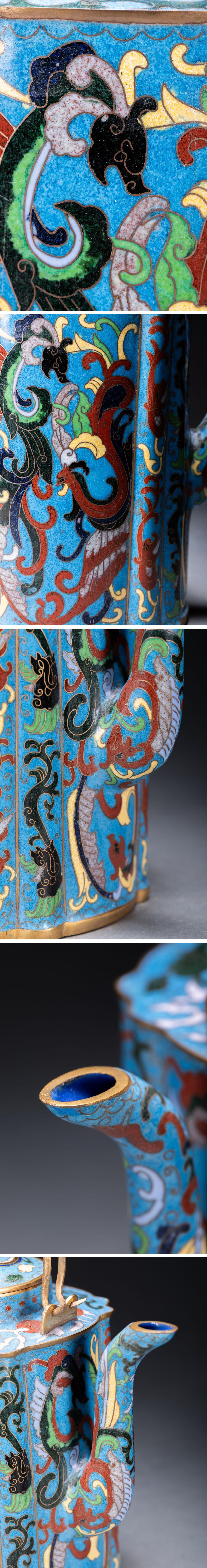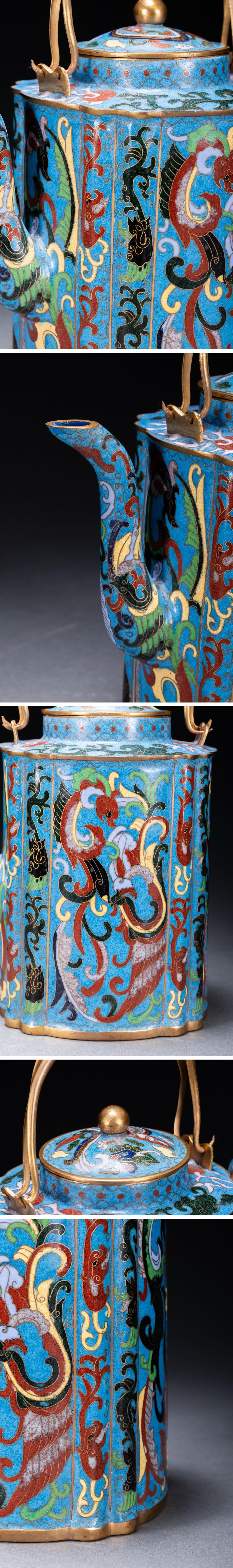 【雲錦】某有名オークション購入 時代物 中国伝来 七宝焼 龍鳳紋急須 古茶煎道具 古置物 古美術 時代コレクション7L10-114S25