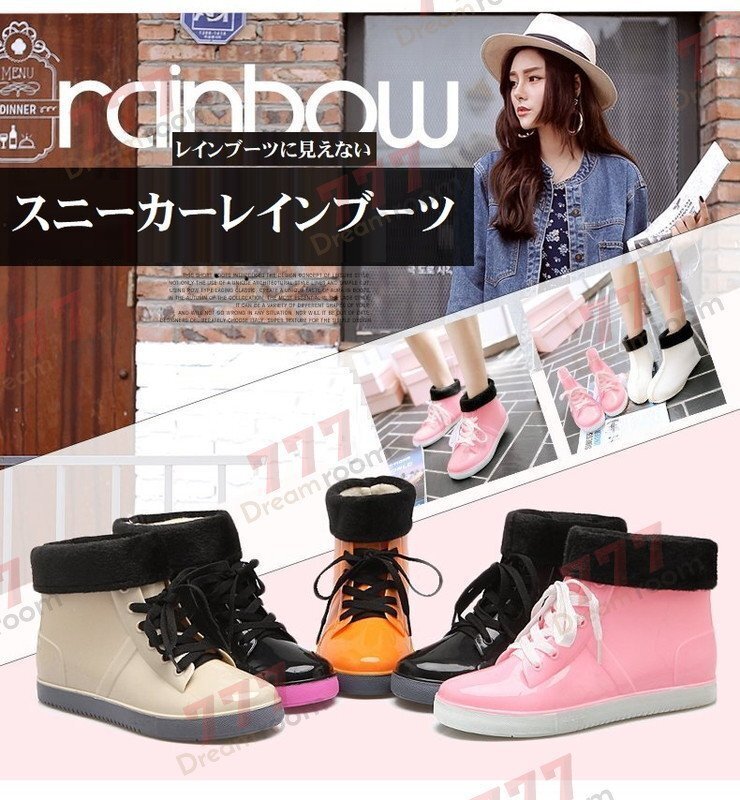 1スタ☆お洒落☆スニーカー レインブーツ K-382【24.5cm】長靴 レディース 女の子 雨靴 梅雨