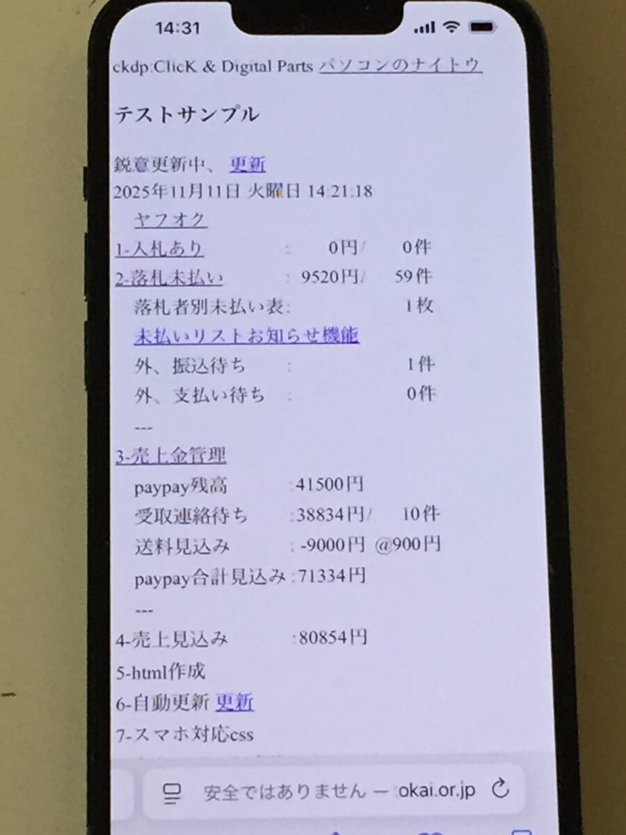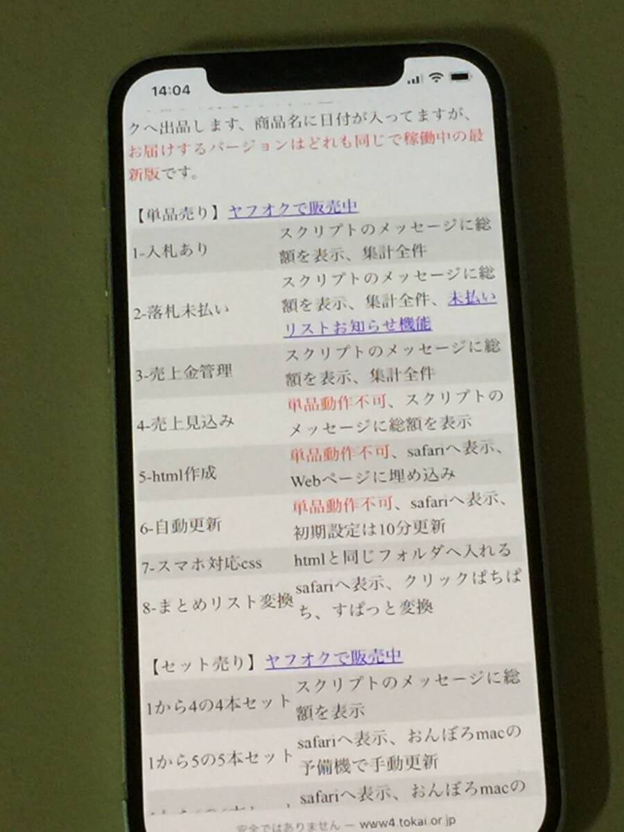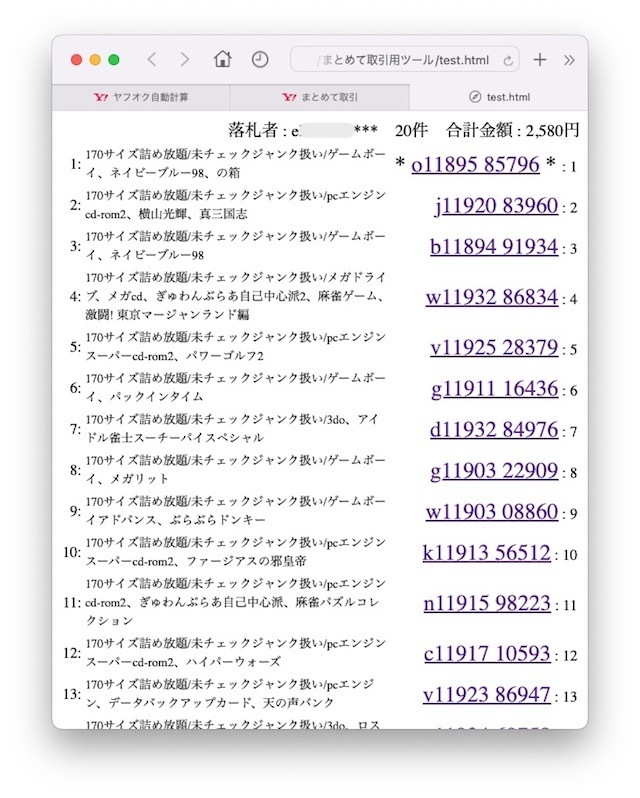 | 2-落札未払い | スクリプトのメッセージに総額を表示、集計全件、未払いリストお知らせ機能 |