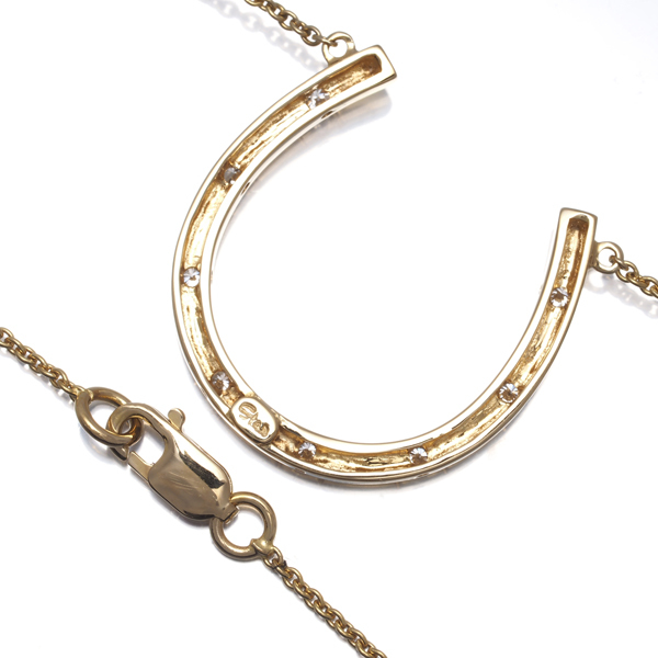 繊細な作りとこだわりを持ったデザインで日常を彩る人気ブランド スタージュエリー。存在感のある光沢で描かれたラッキーモチーフ ホースシューにダイヤモンドの煌めきを散りばめた素敵なネックレスです。 |