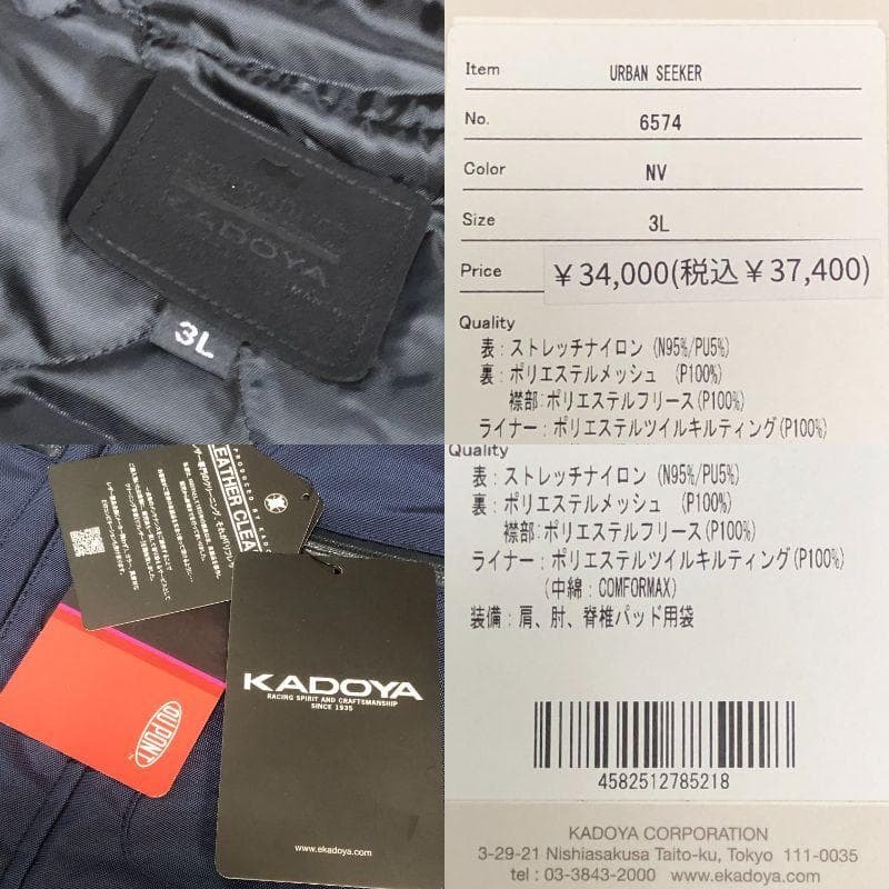 | 商品説明 | カドヤ URBAN SEEKER バイク コート KADOYA K'S LEATHER&K'S PRODUCT 品番:6574 定価:37400円 新品未使用 カラー:ネイビー サイズ:3L ■デザイン オールシーズン対応のナイロンライディングコート、ナイロンストレッチ素材により、ポジションの制限がなく着易い一着。前面の各ポケットと背面・脇にはベンチレーション機能を装備し、バイク使い/普段使いに限らず様々なシーンでオールシーズン着用できる。 ■商品特徴 ・肩・肘・脊椎パッド装着可能・フロントポケット、背面、脇ベンチレーション装備 ・ZIP着脱式ライナージャケット装備 ■素材 表:ストレッチナイロン(N/95%/PU/5%)裏:ポリエステルメッシュ(COOLDEHYBER)中:ポリエステルツイル・キルティング(中綿/COMFORMAX)※内装用プロテクターは別売となります |